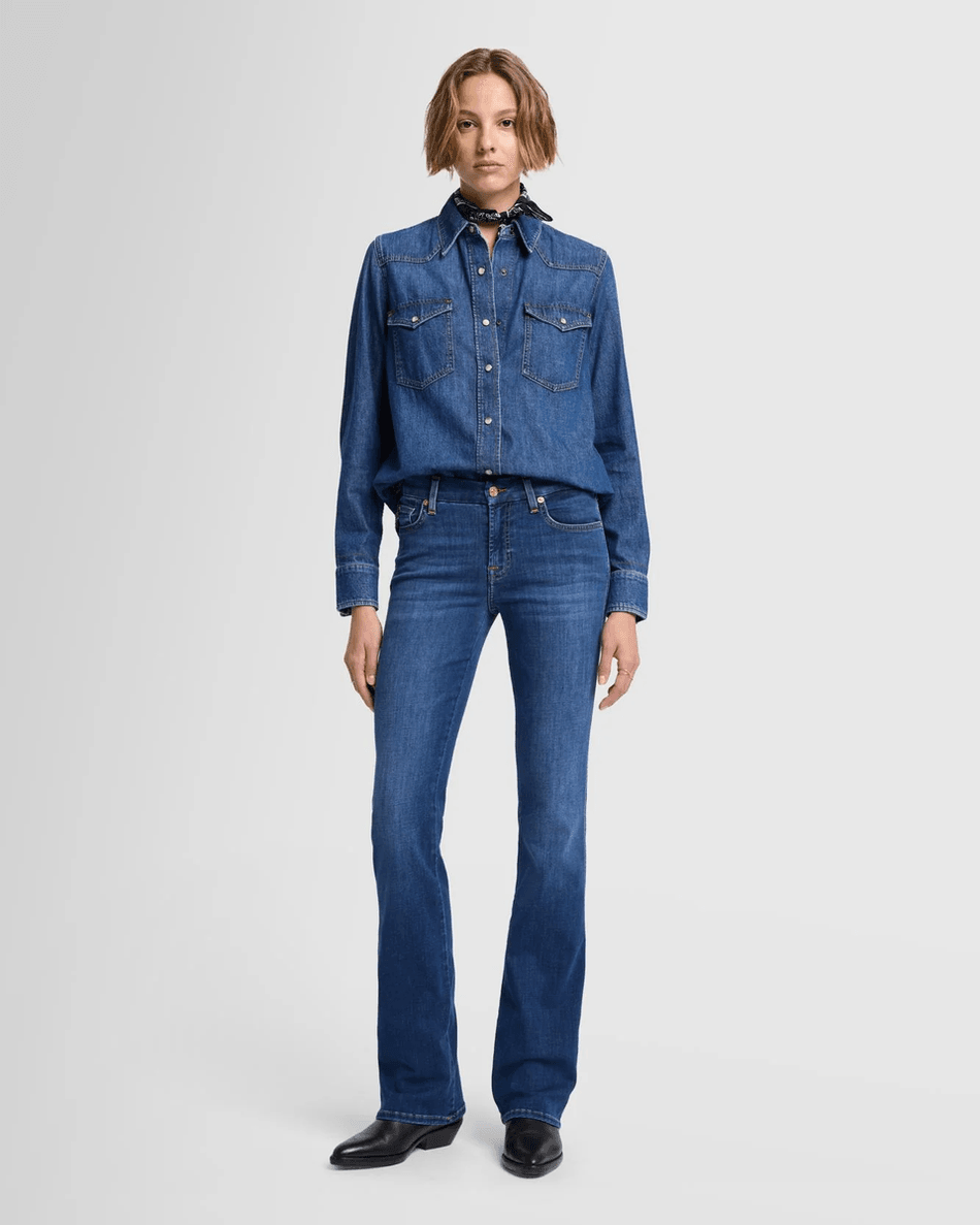 Step into effortless style with the 7 For All Mankind B(air) Kimmie Bootcut in Duchess Duchess. This versatile mid-rise jean is designed to flatter all body types, making it a must-have addition to your wardrobe. With its laid-back medium wash, you can easily transition from the office to a weekend outing.