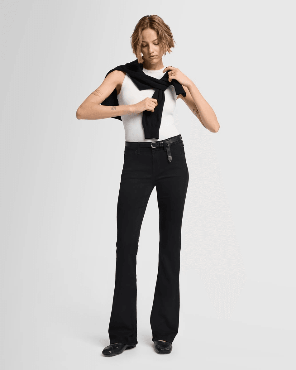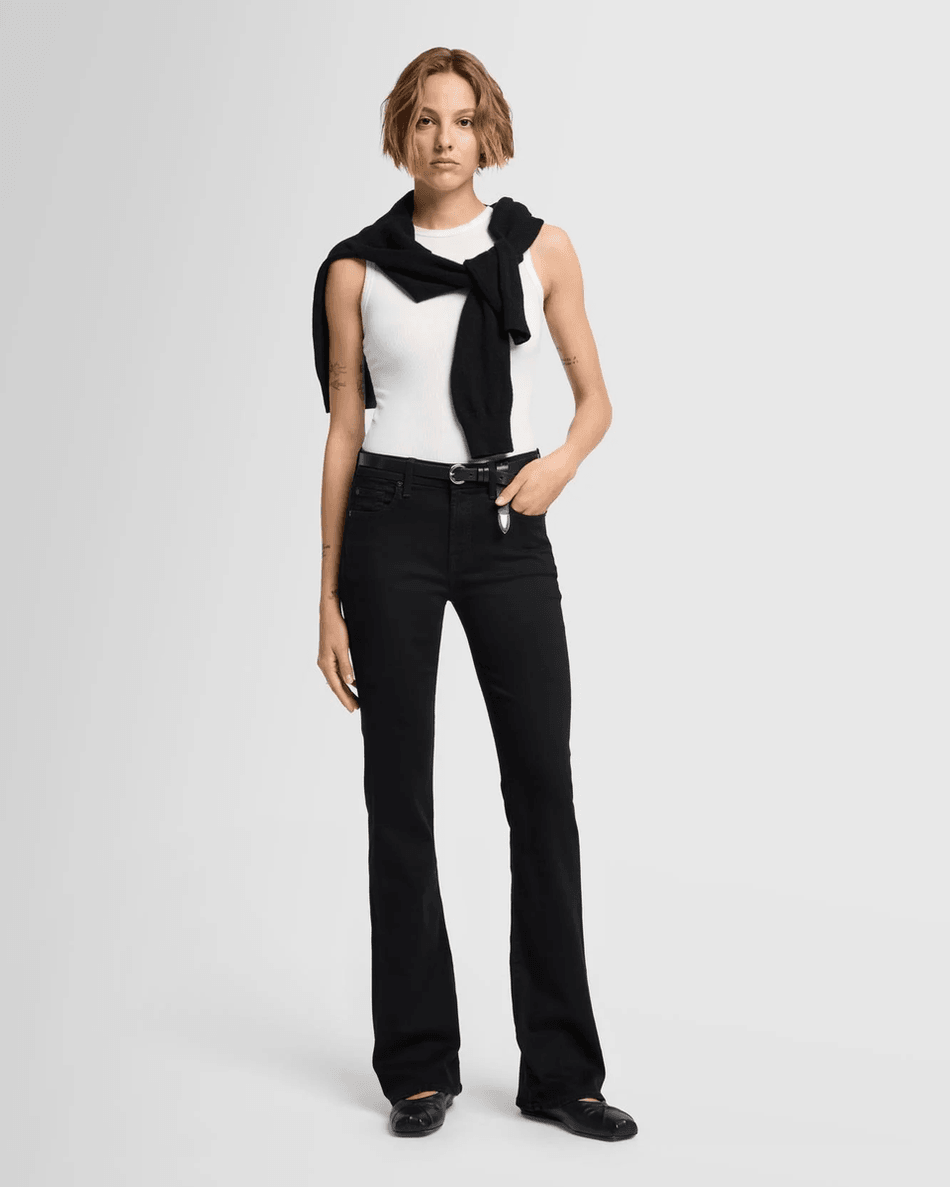 The 7 For All Mankind B(air) Kimmie Bootcut in Rinsed Black features a flattering mid-rise cut that enhances your silhouette while ensuring maximum comfort. Its ultra-stretchy fabric moves with you, making it ideal for various activities—from running errands to enjoying a night on the town. The classic bootcut design pairs beautifully with boots, heels, or your favorite sneakers.