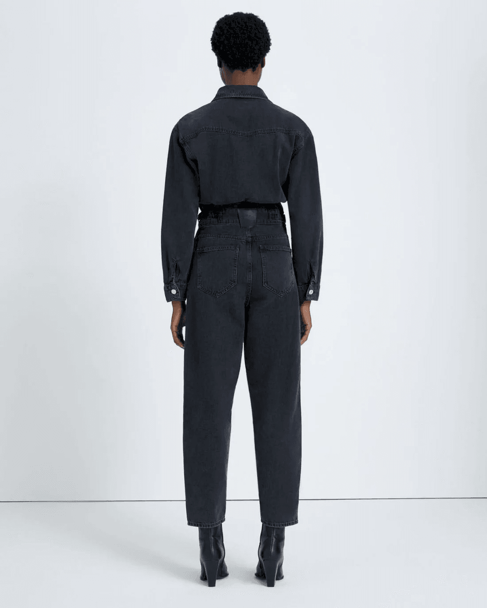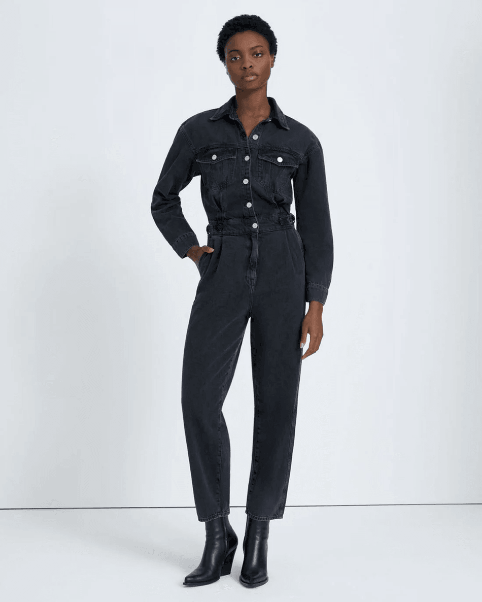 The 7 For All Mankind Balloon Sleeve Jumpsuit in Night Iris features a stunning worn black wash that enhances its go-anywhere potential. The relaxed fit allows for easy movement while the adjustable waist tabs help you achieve the perfect silhouette. Whether you're heading to brunch or a night out, this jumpsuit is designed to make a statement.