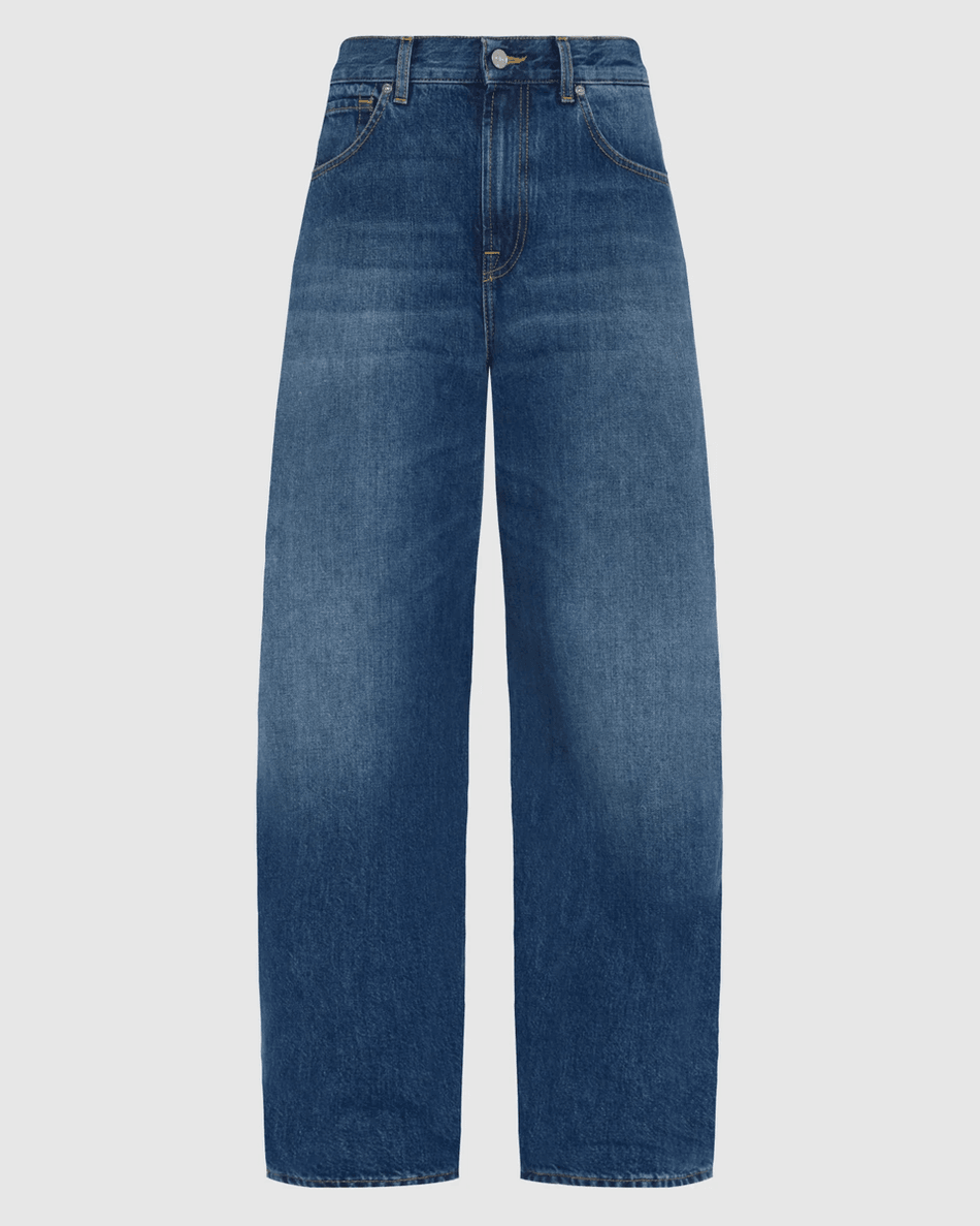 Introducing the 7 For All Mankind Bonnie Zip Barrel Leg in Topic Topic – your new go-to denim for effortless style and comfort. This unique pair of jeans combines a relaxed fit with a modern silhouette, making it perfect for any casual outing.