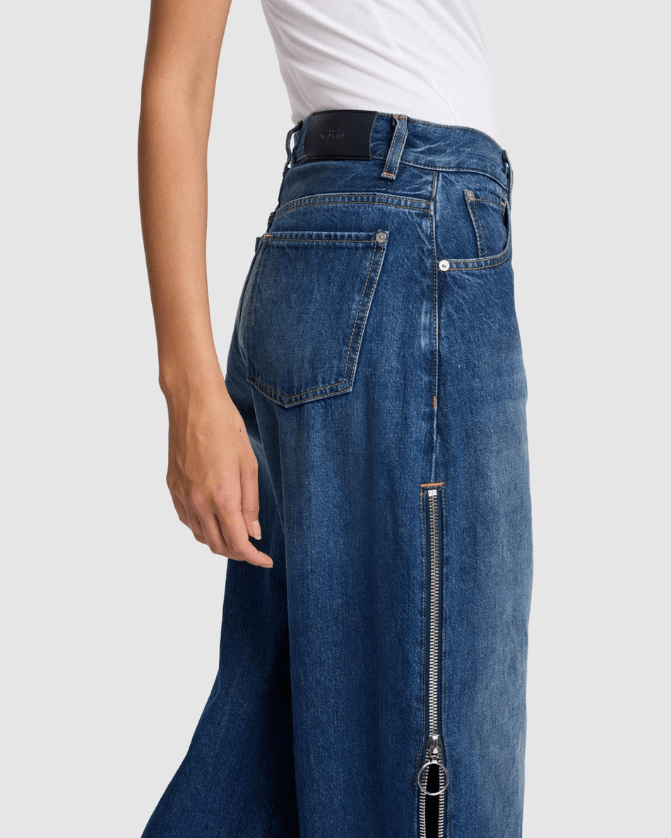 The 7 For All Mankind Bonnie Zip Barrel Leg is crafted from classic, rigid denim that feels premium and durable. The medium blue wash adds versatility, allowing you to pair it with a variety of tops. The high-rise zip closure not only enhances your silhouette but also provides a secure fit. With its side slit detail, this denim offers a unique touch that sets it apart from ordinary styles.
