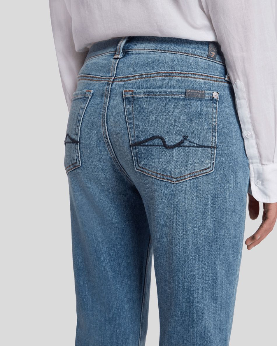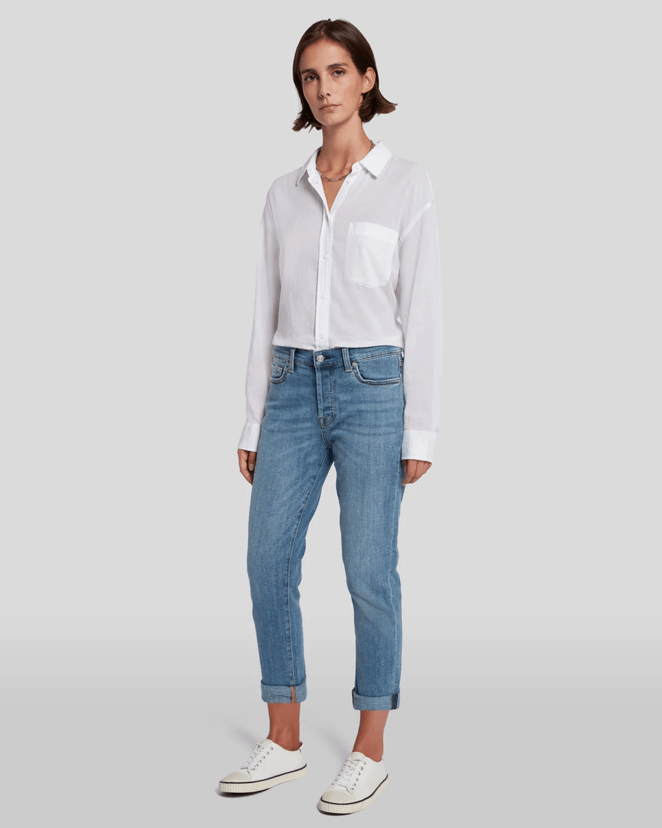 Elevate your wardrobe with the 7 For All Mankind Broken Twill Josefina in Bright Light. This slim-fit boyfriend jean combines a relaxed style with a polished finish, making it the perfect choice for any occasion, from workdays to weekend outings.