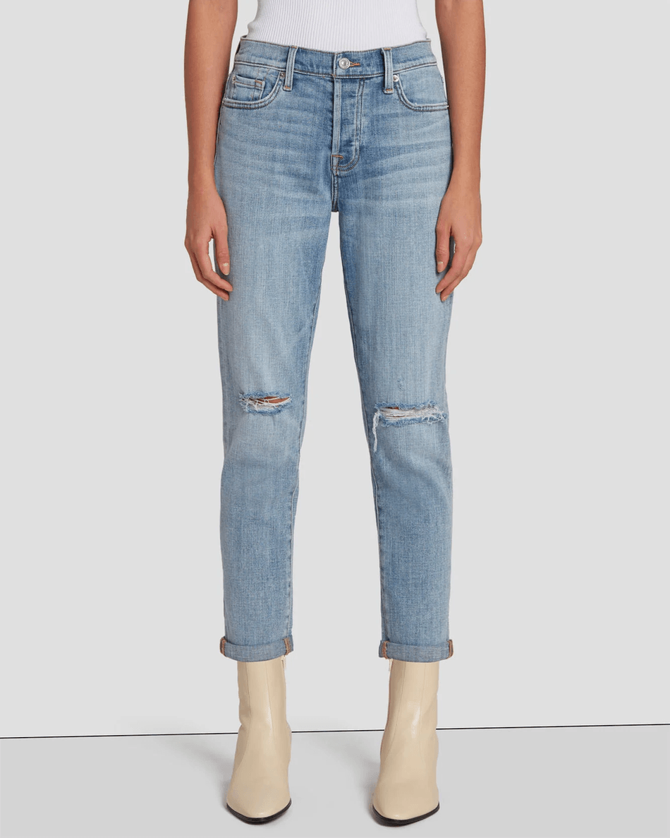 Elevate your denim collection with the 7 For All Mankind Broken Twill Josefina in De Ville. This stylish slim boyfriend silhouette combines effortless comfort with a chic, well-loved look, making it your go-to choice for any occasion.