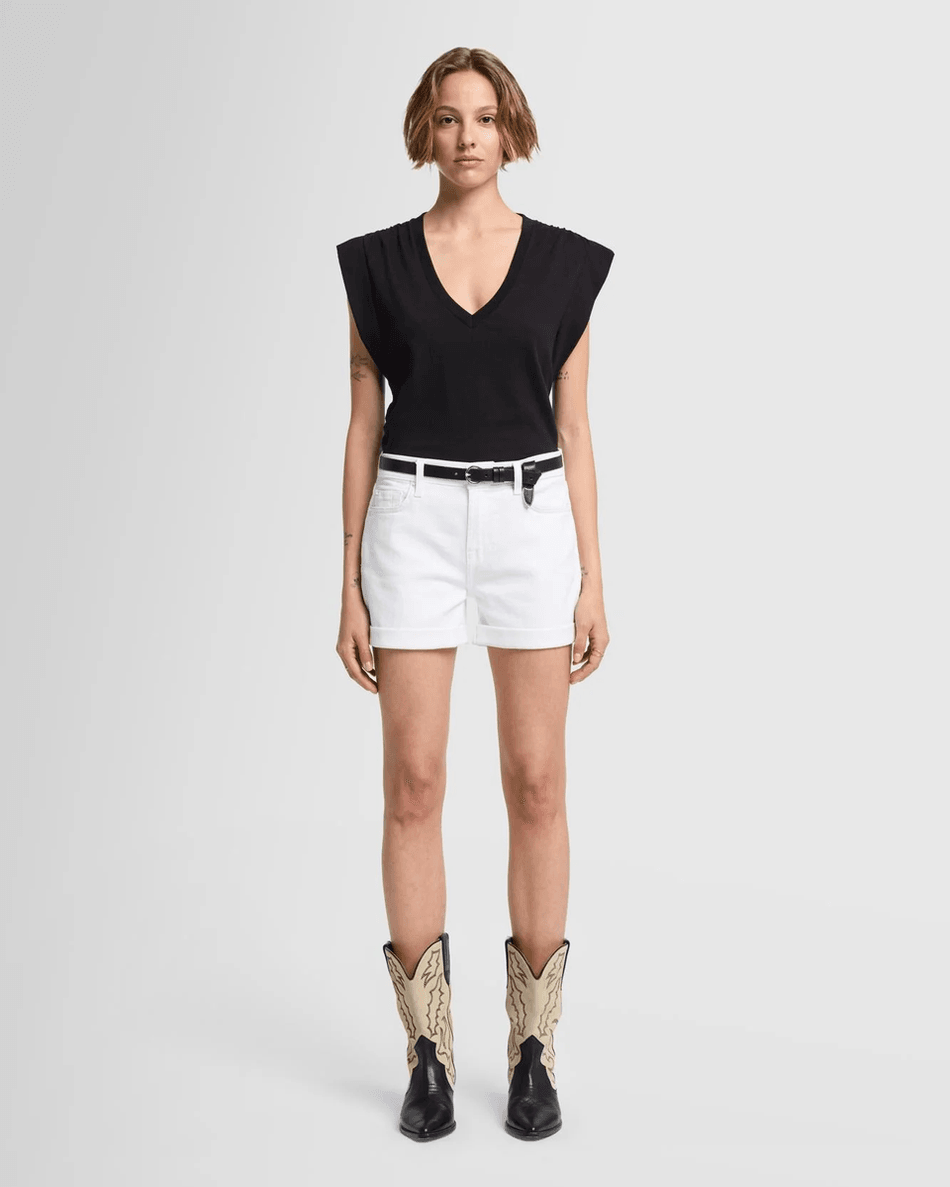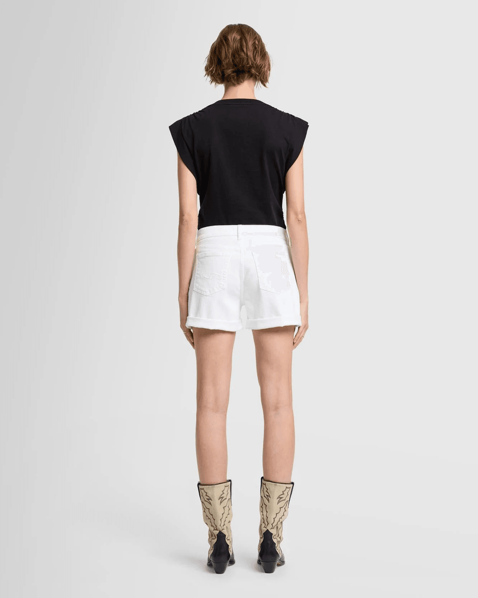7 For All Mankind Broken Twill Mid Roll Short In White White