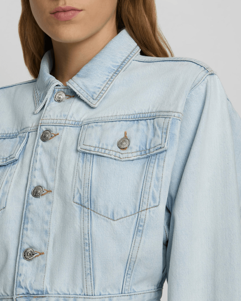 Discover the 7 For All Mankind Cropped Trucker Jacket in Icy Indigo