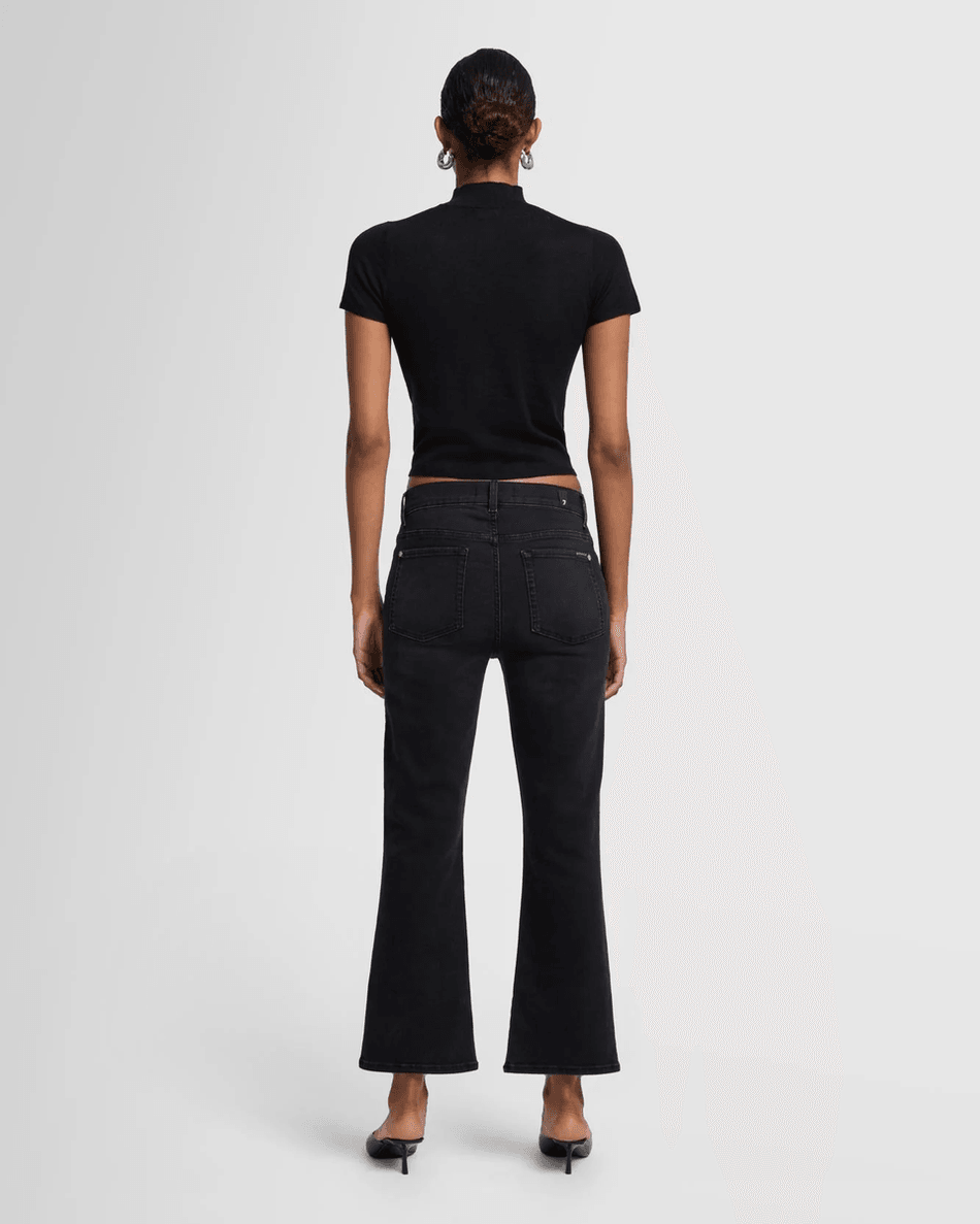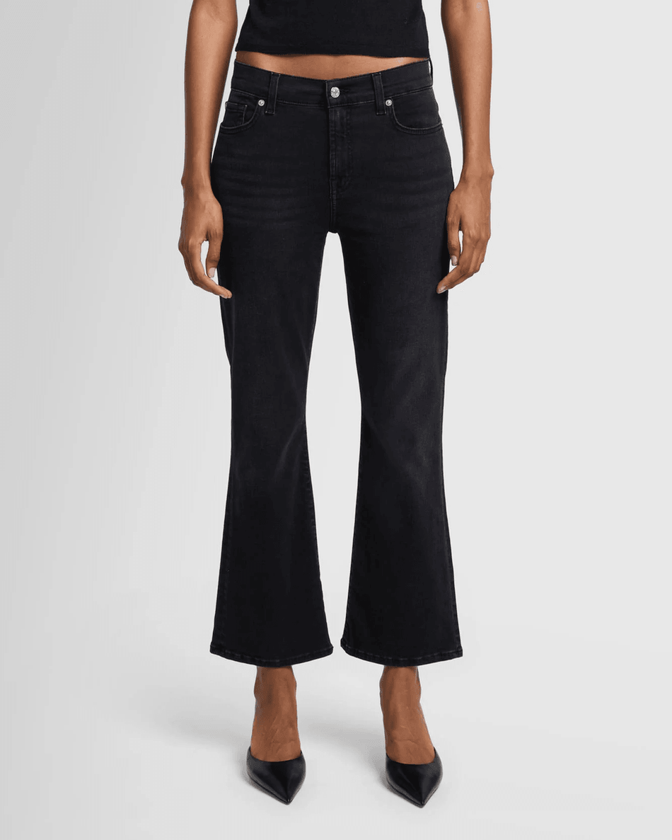 Step into style with the 7 For All Mankind Daisy Ankle Boot in Nights Nights. This chic boot features a cropped, low-rise bootcut silhouette that perfectly combines comfort and trend. Designed to fit snugly through the hips and thighs, it flares gently at the ankle for a flattering look.