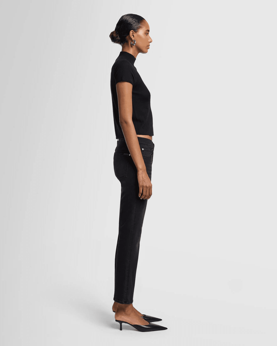 The 7 For All Mankind Daisy Ankle Boot in Nights Nights is not just a pair of boots; it's a fashion statement. The fitted design enhances your silhouette, making it perfect for pairing with your favorite tops or layering with trendy jackets. The gentle bootcut flare offers a modern twist that complements various styles, ensuring you look effortlessly chic.