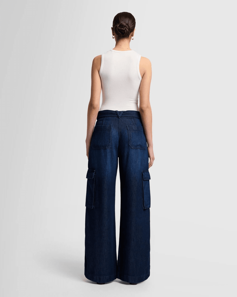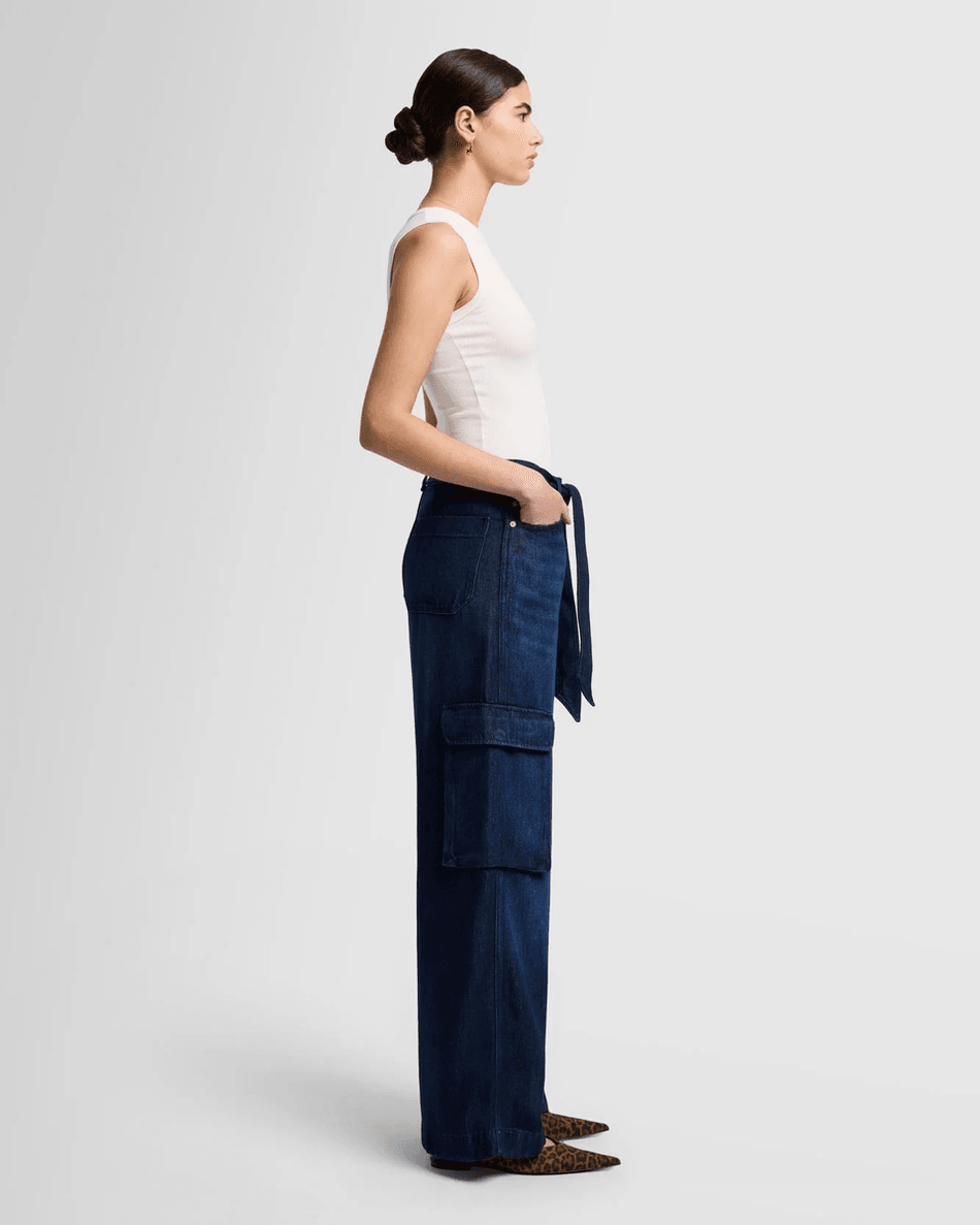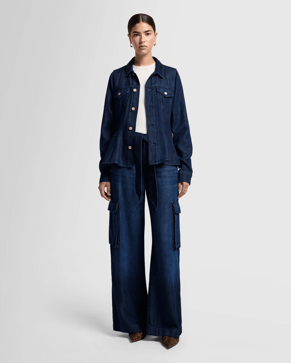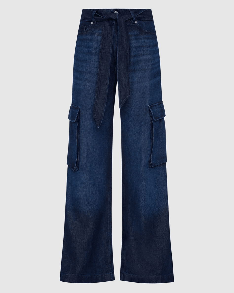 Discover the 7 For All Mankind Denim Lustre Cargo Wide Leg in Stormy Stormy