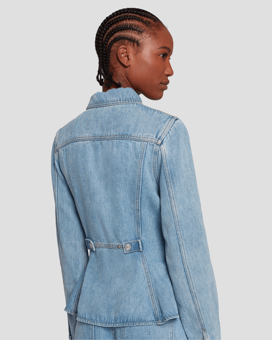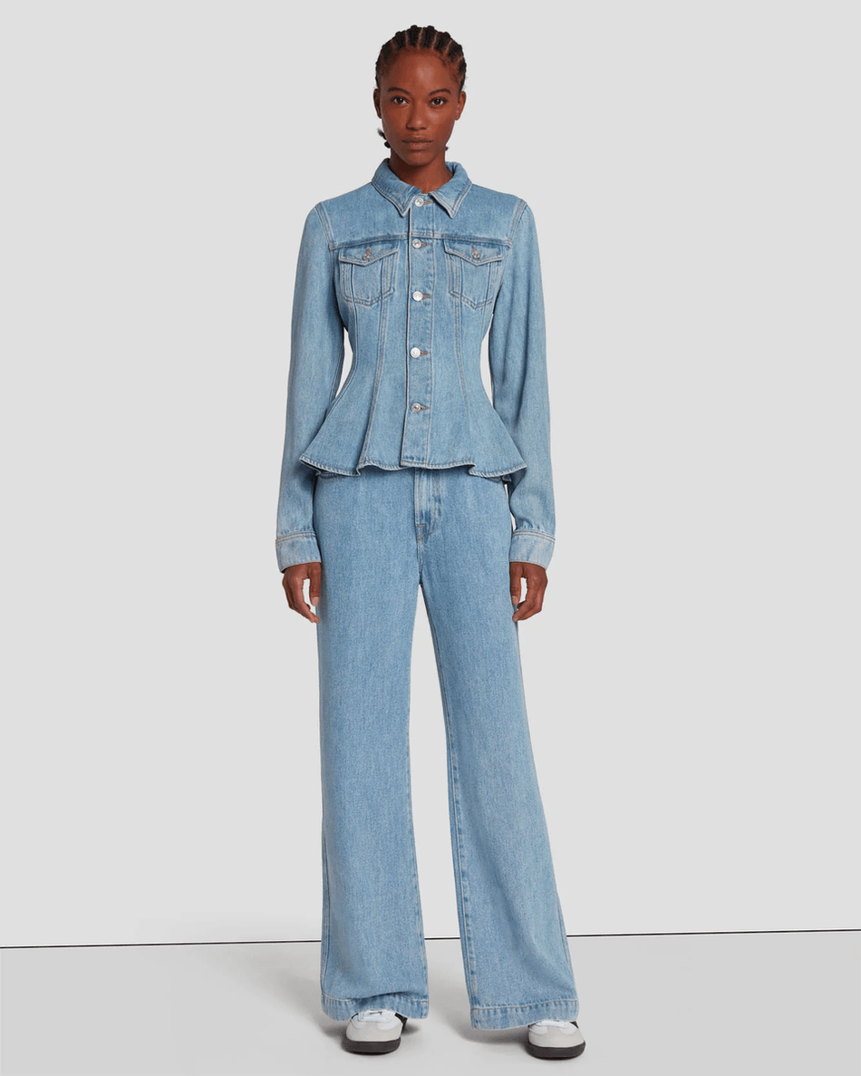 Discover the 7 For All Mankind Denim Lustre Trucker Jacket in Volcan Blue