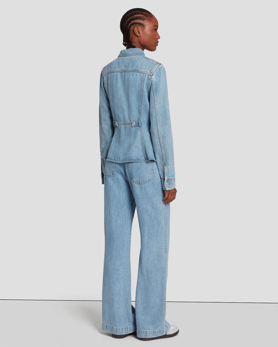 The 7 For All Mankind Denim Lustre Trucker Jacket is designed for the modern woman who values both style and sustainability. Its unique fitted bodice accentuates your shape, while the flared hem adds a playful touch. The soft, breathable fabric ensures all-day comfort, making it ideal for both casual outings and dressed-up occasions.