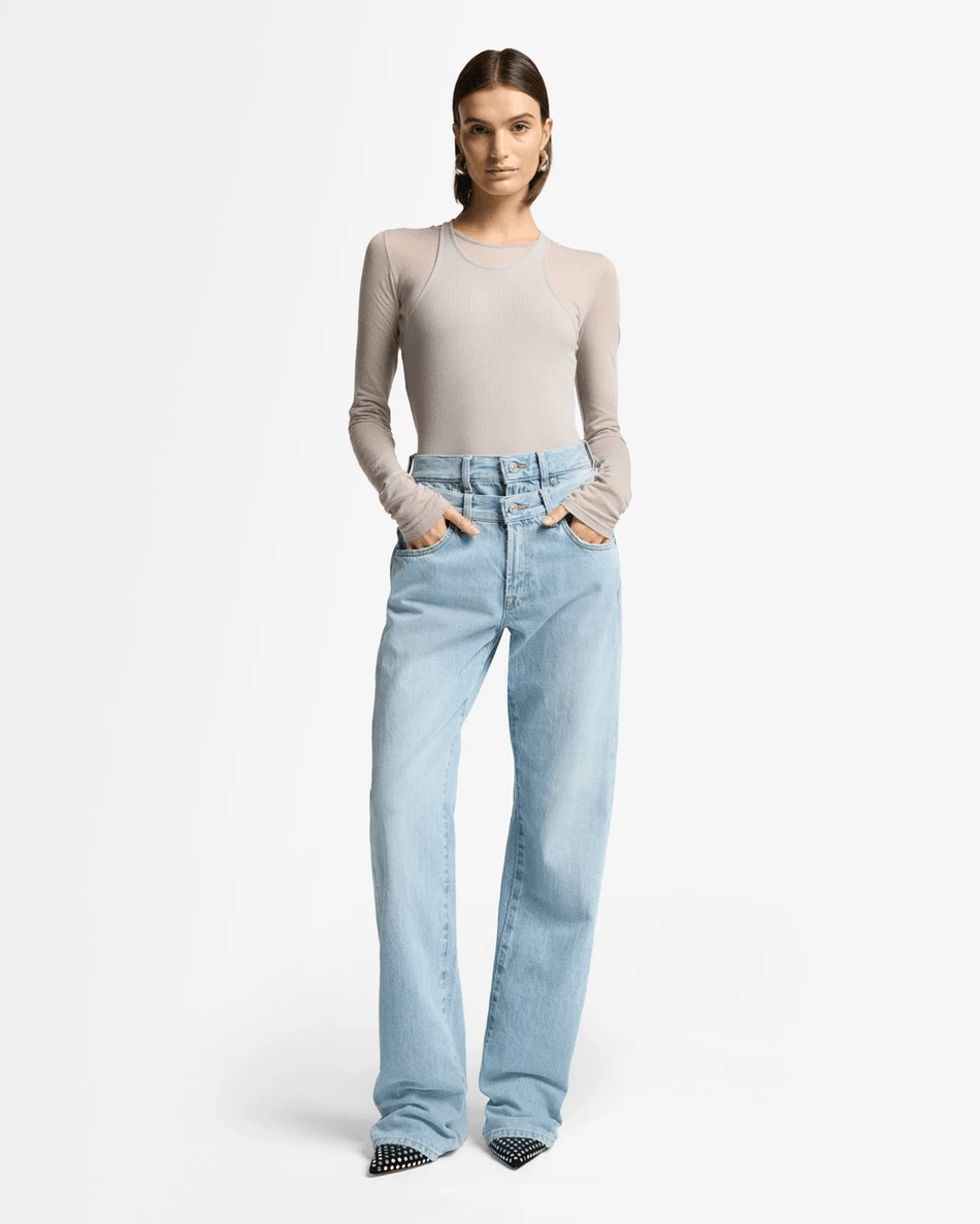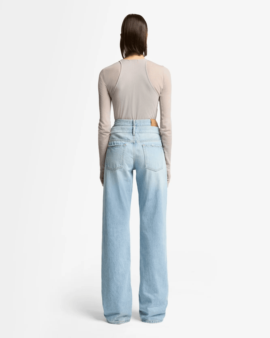 Elevate your denim game with the 7 For All Mankind Double Waist Trouser in Bleach Bleach. This stylish trouser combines a unique double-waisted design with a classic straight-leg fit, perfect for making a bold fashion statement. Crafted from 100% cotton, these trousers offer a rigid feel initially but soften beautifully over time, giving you that authentic, lived-in comfort.