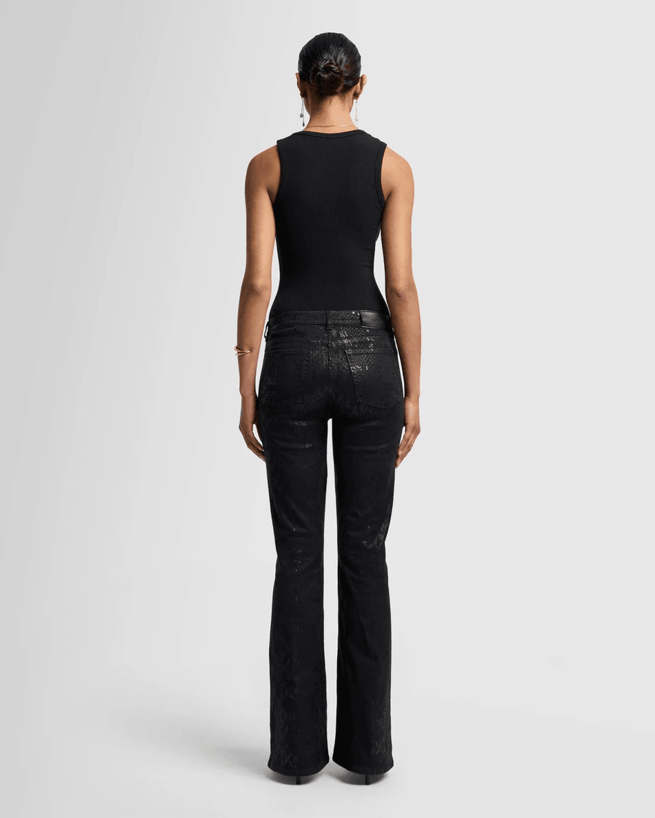 The 7 For All Mankind High Waist Ali in Black Cobra is crafted from our signature denim, ensuring a classic yet structured feel. The coated details mimic the look of leather, making these jeans perfect for any occasion, from casual outings to trendy nights out. Pair them with your favorite heels or ankle boots for a striking look that turns heads.
