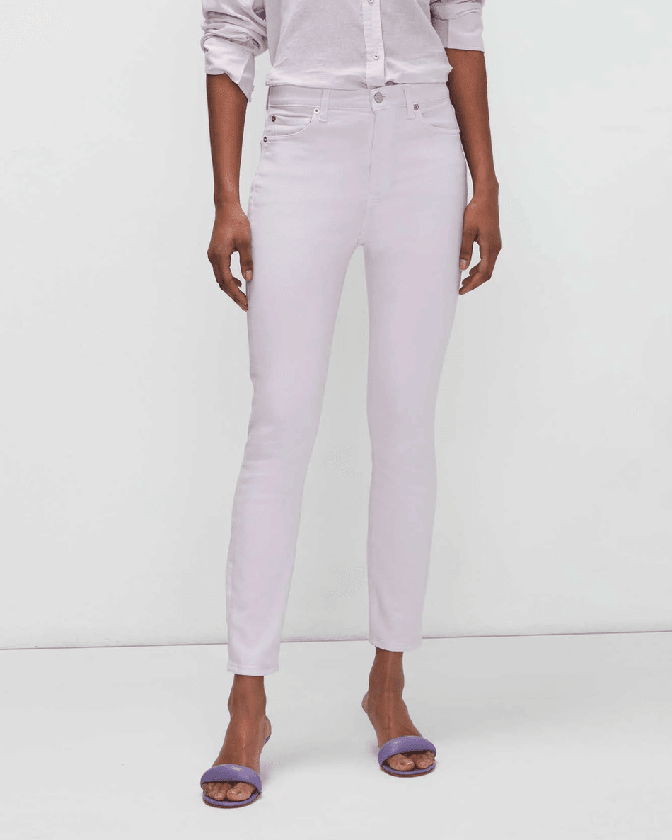 Discover the 7 For All Mankind High Waist Ankle Skinny in Lilac