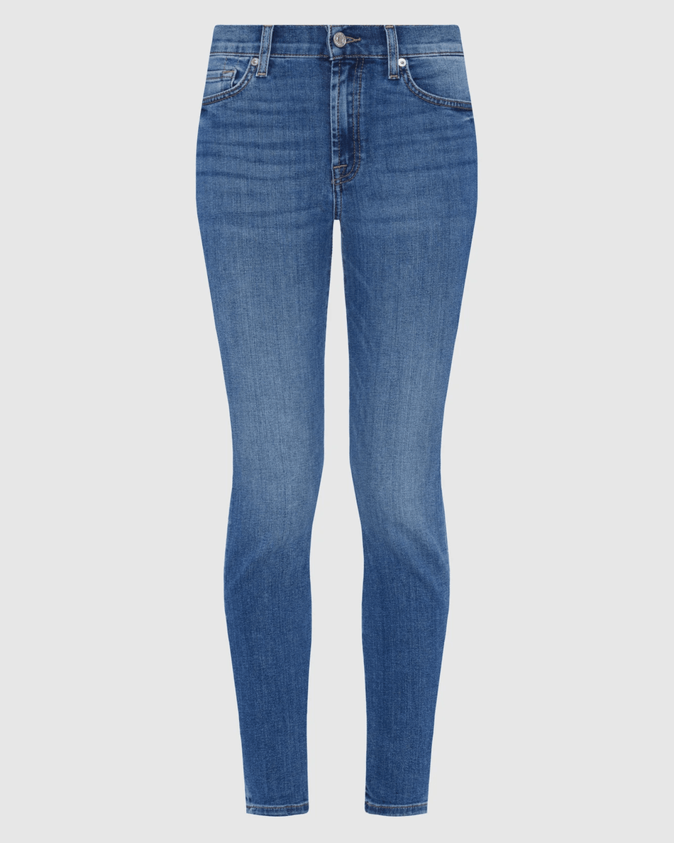 Discover the perfect blend of comfort and style with the 7 For All Mankind High Waist Ankle Skinny in Marsh Marsh. Designed for the modern woman, these jeans feature a high-rise fit that flatters your figure while offering a relaxed, straight leg silhouette. Experience the classic denim feel enhanced with just the right amount of stretch for all-day wear.
