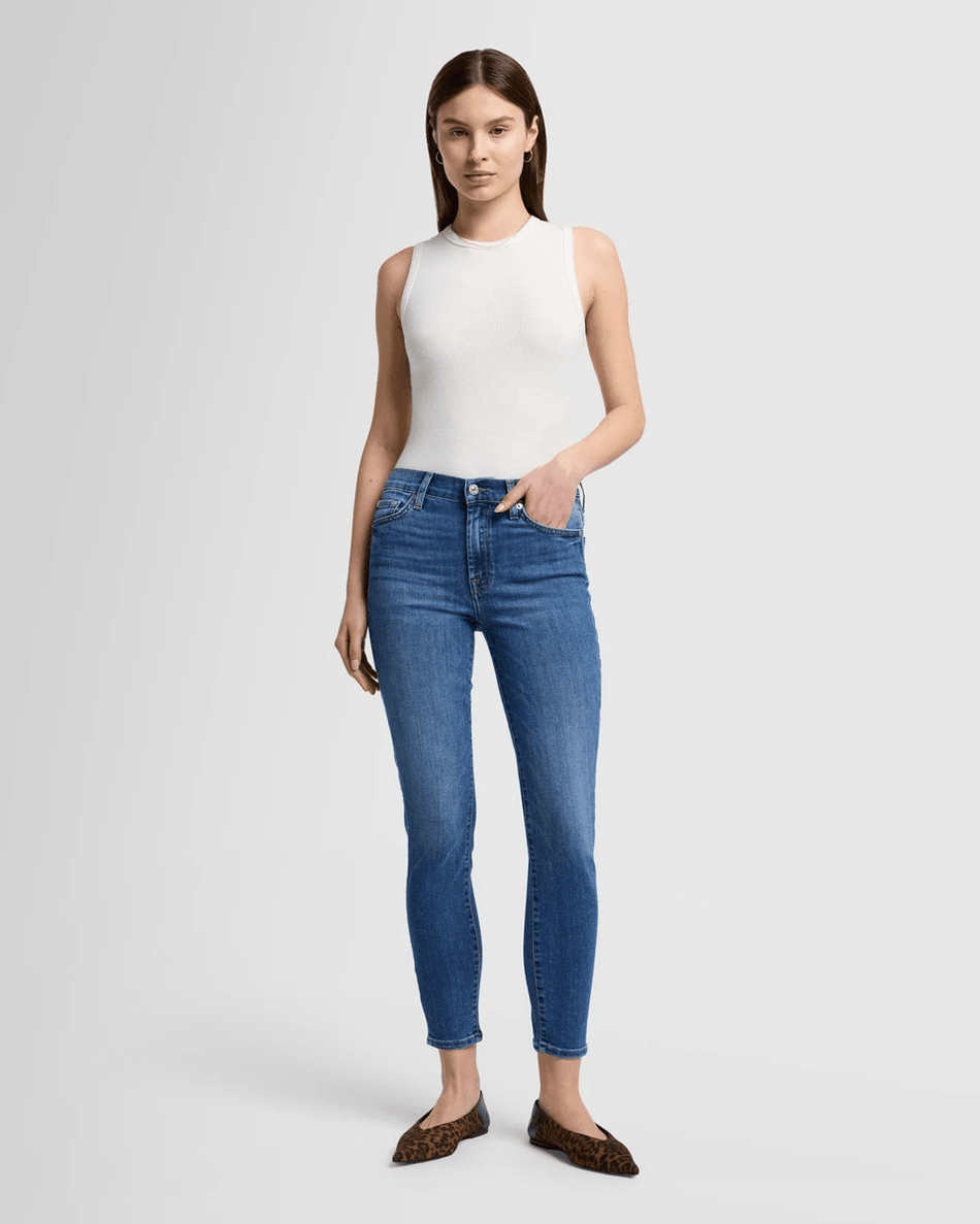 Ready to elevate your denim collection? Don’t miss out on the 7 For All Mankind High Waist Ankle Skinny in Marsh Marsh. Shop now and experience the perfect combination of style and comfort!