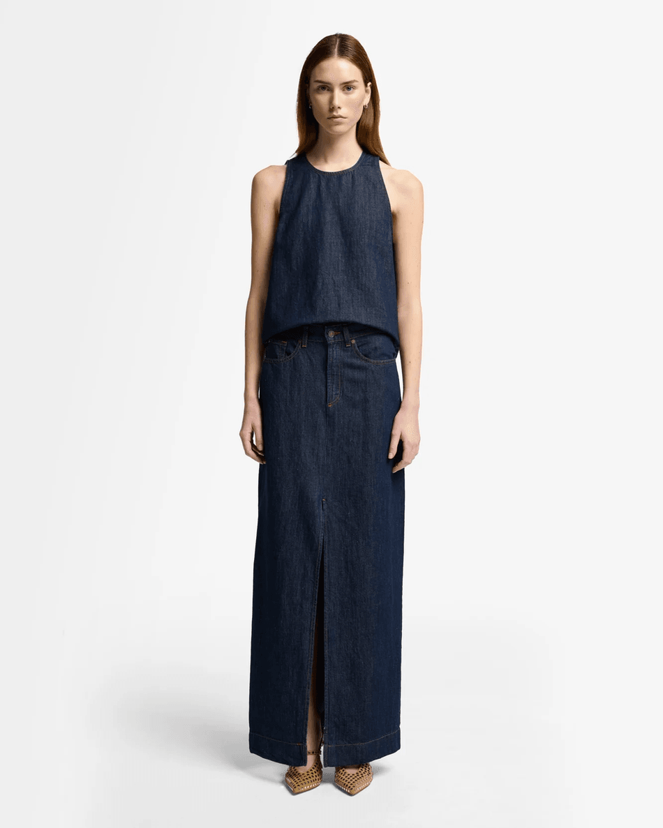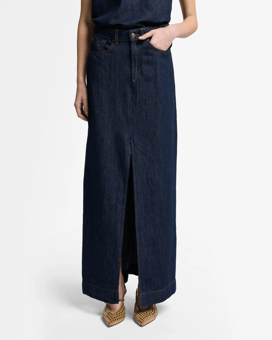 Discover the 7 For All Mankind Indigo Linen Calla Skirt in Blueberry Blueberry