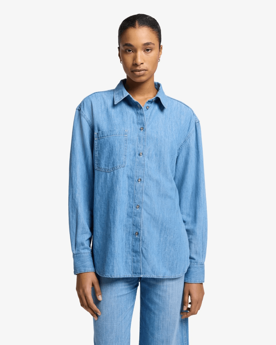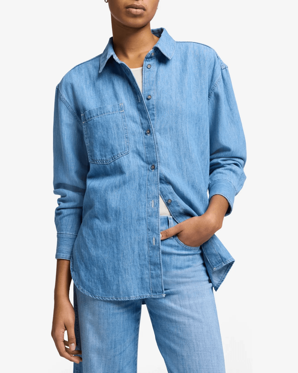 Discover the 7 For All Mankind Indigo Linen Easy Shirt in Icy Icy