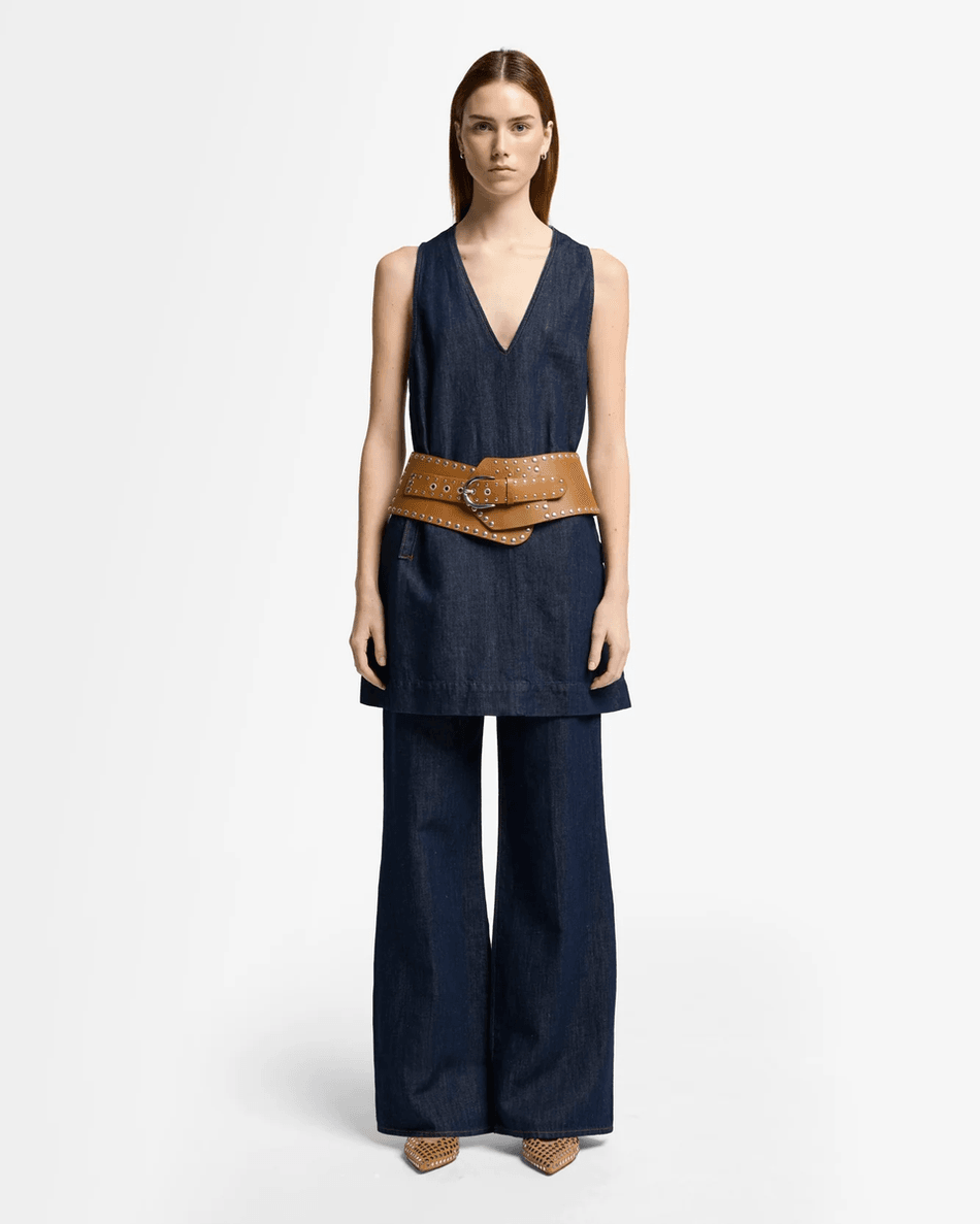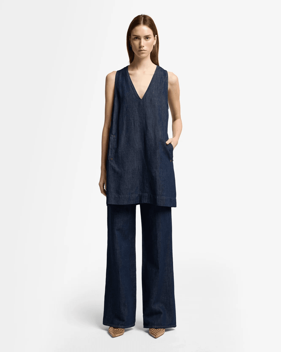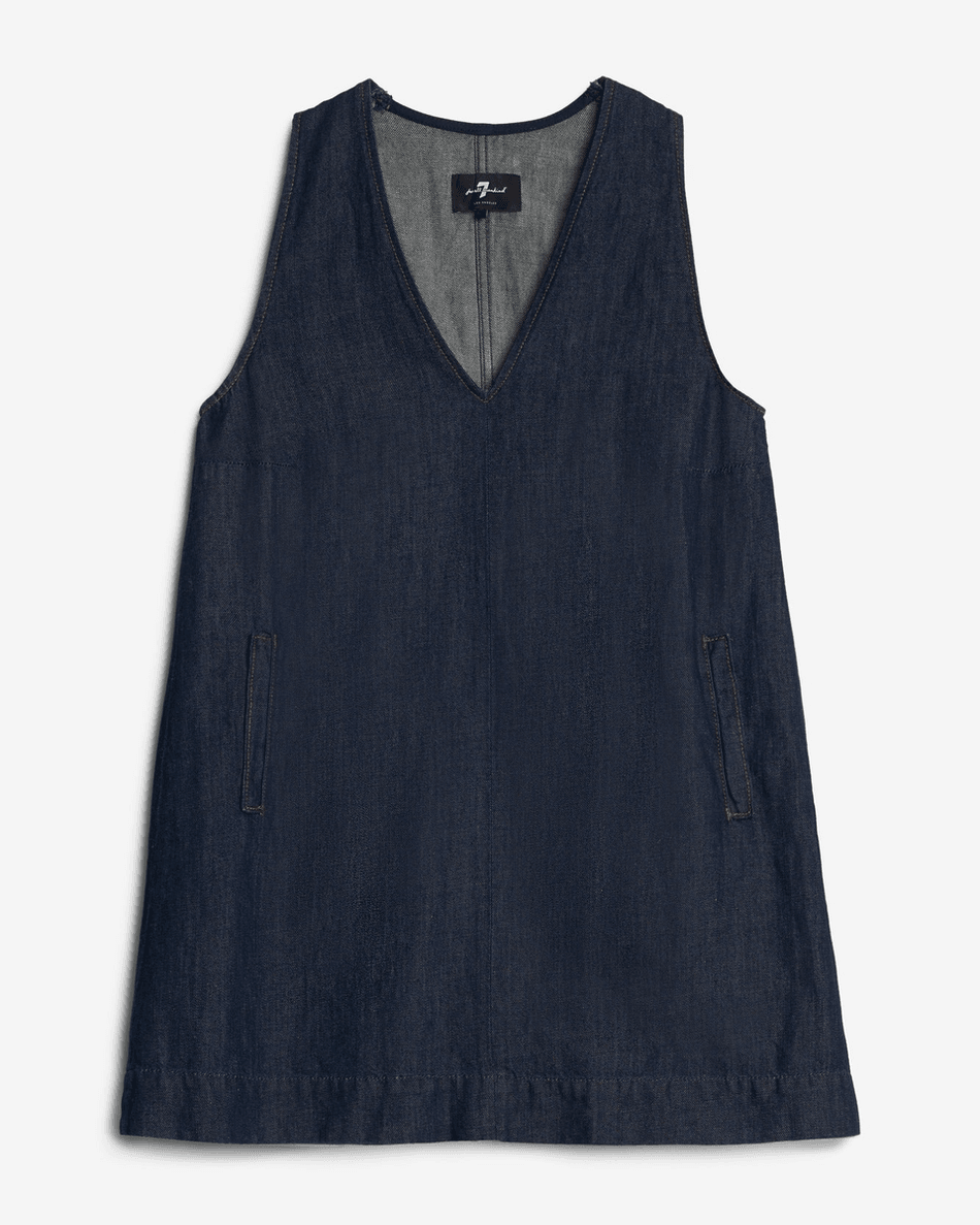 The 7 For All Mankind Indigo Linen V-Neck Dress features a rich dark wash hue that adds sophistication to your casual style. Its sleeveless design and flowy silhouette make it ideal for everything from beach parties to brunch dates. Pair it with sandals for a laid-back vibe or dress it up with accessories for a night out.