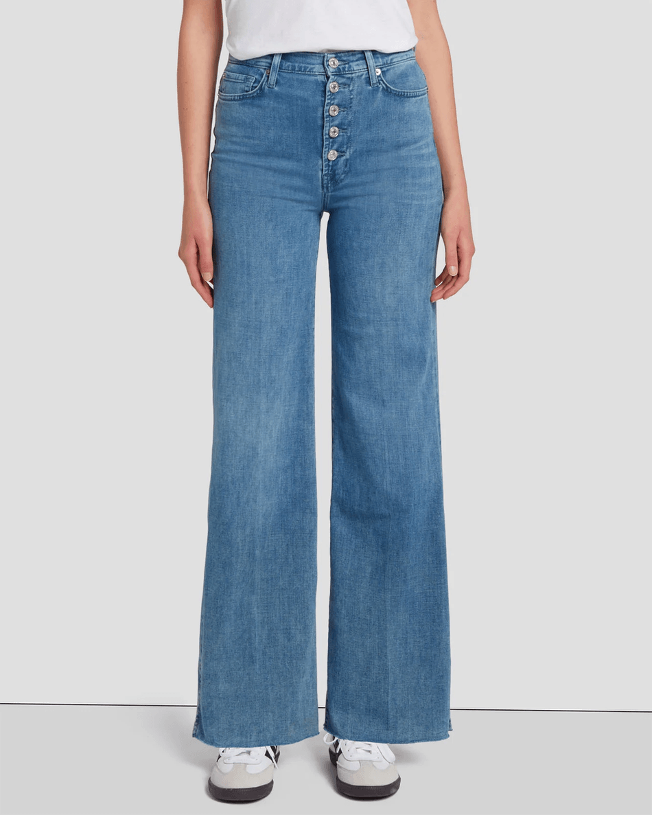 Elevate your denim collection with the 7 For All Mankind Left Hand Ultra High Rise Jo in Vive Vive. These jeans combine luxurious details with an effortlessly chic silhouette, making them a must-have for fashion-forward individuals.