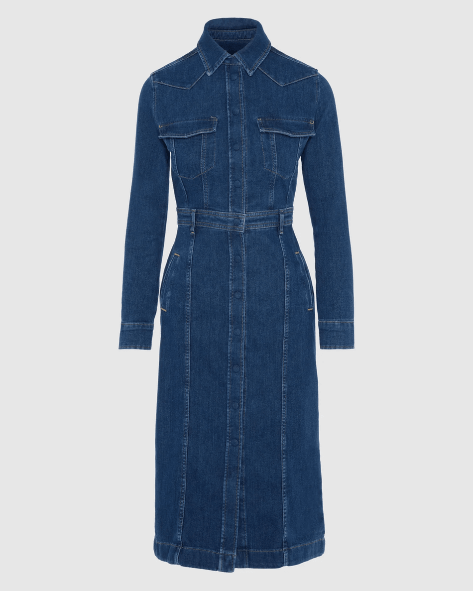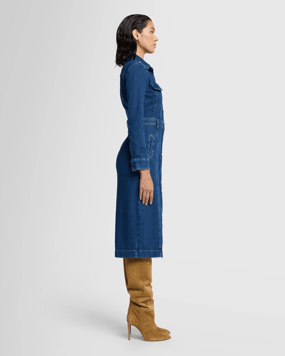 The 7 For All Mankind Luxe Dress in Cove Cove is designed for versatility. Whether you're heading to brunch or a casual evening out, this dress adapts effortlessly to your plans. The soft denim fabric feels great against the skin, providing just the right amount of stretch for ease of movement.