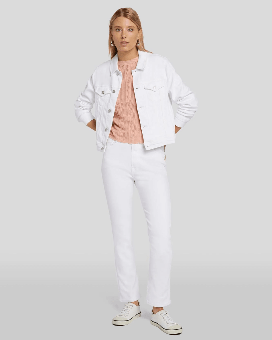 The 7 For All Mankind Luxe Vintage Easy Slim Ankle in Soleil Soleil is your go-to choice for casual days or stylish outings. The white wash finish adds a fresh touch, making it versatile enough to pair with any top. Whether you're dressing up for brunch or enjoying a relaxed evening, these jeans deliver both style and comfort.