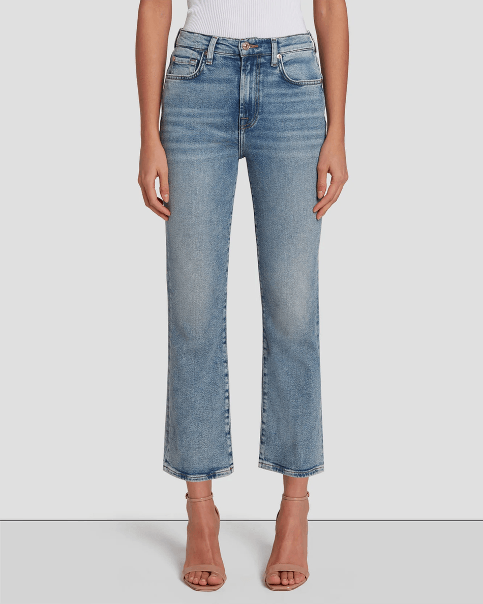 Elevate your denim collection with the 7 For All Mankind Luxe Vintage High Waist Slim Kick in Self Made. This stunning pair features a flattering cropped kick flare that accentuates your silhouette while offering a chic vintage vibe.