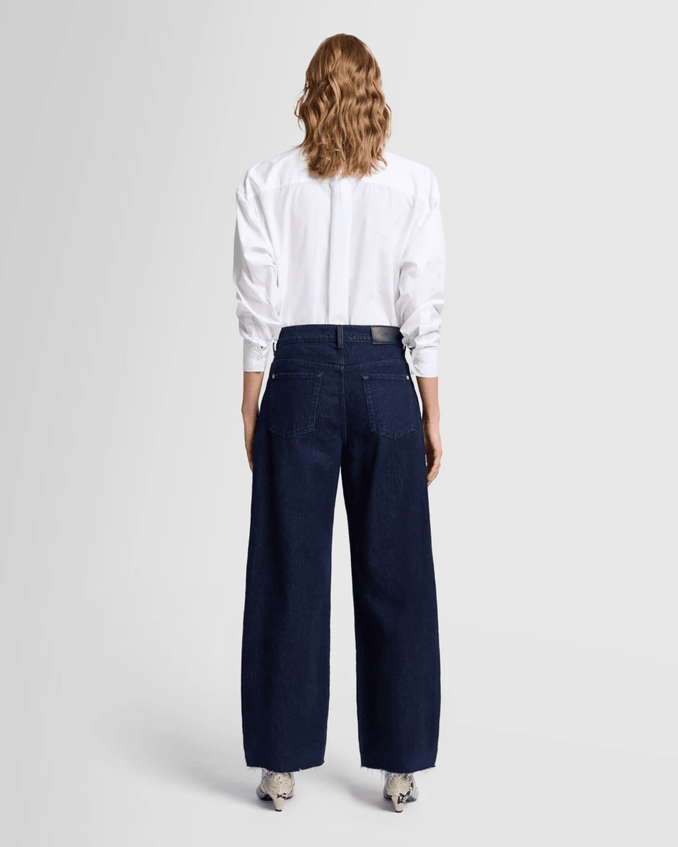 The 7 For All Mankind MANKIND Bonnie Barrel Leg in Bella Bella is not just a pair of jeans; it's a fashion statement. The dark rinse fabric enhances its versatility, making it easy to transition from day to night. The unique barrel leg shape not only flatters your figure but also adds a touch of sophistication to your wardrobe.