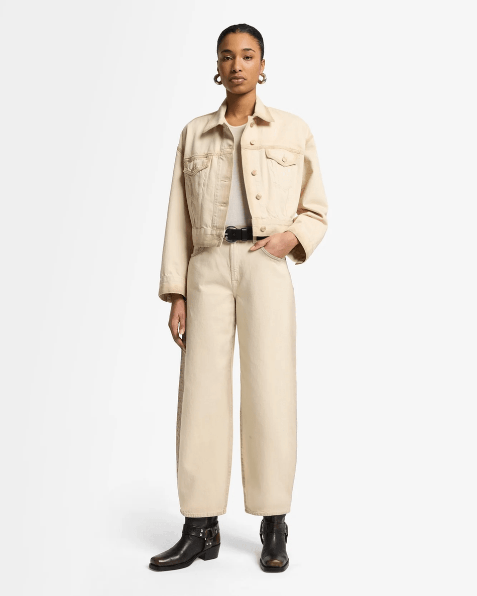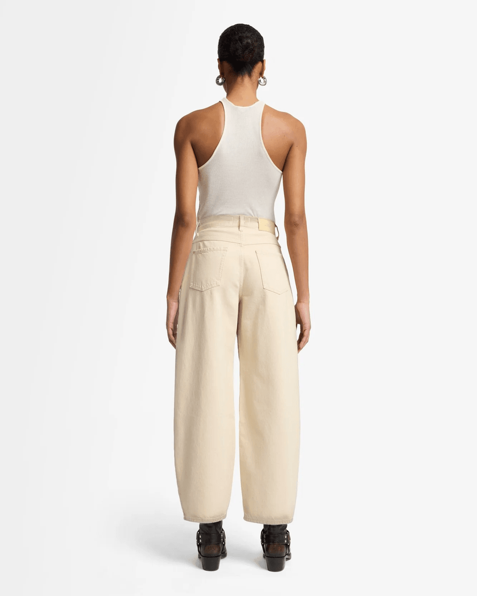 Discover the 7 For All Mankind MANKIND Bonnie Barrel Leg in Sand Beach