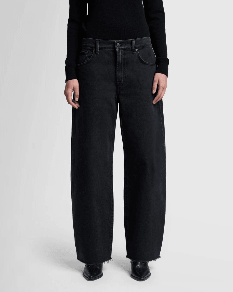 Experience the ultimate blend of style and comfort with the 7 For All Mankind MANKIND Bonnie in Thunder Thunder. This full-length denim offers a unique barrel-leg fit, ensuring you stand out while enjoying a relaxed, oversized design. Perfect for those who appreciate a modern twist on classic denim.