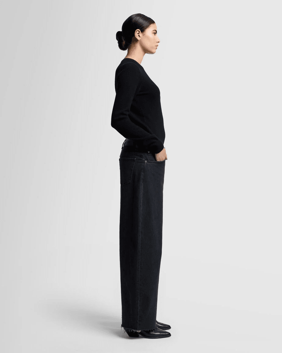 With its faded black wash and raw hems, this denim piece is not just a wardrobe staple but a statement. Whether you're heading out for brunch or a night on the town, the Bonnie's versatility makes it a must-have. For a less relaxed fit, consider sizing down.