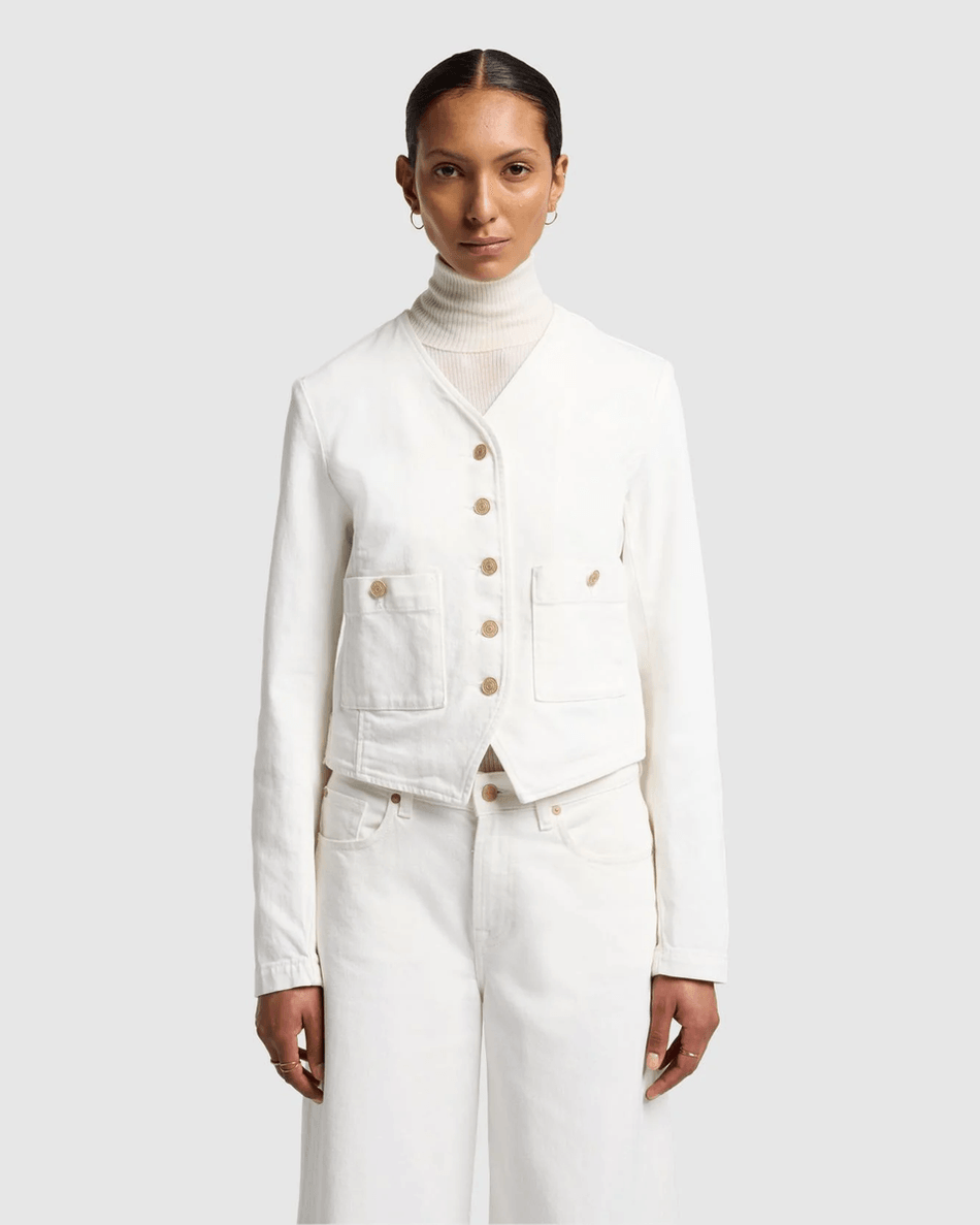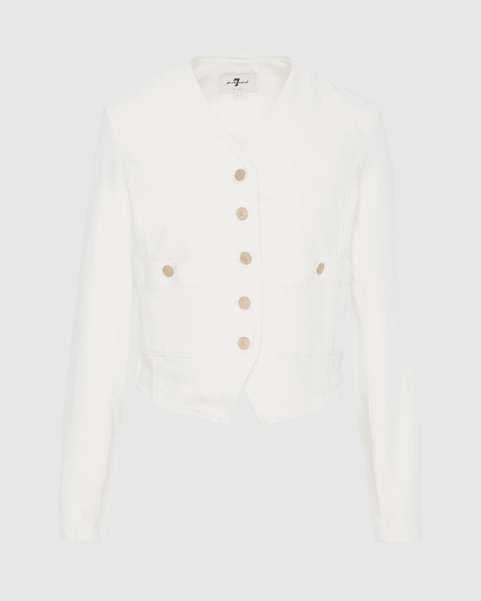 7 For All Mankind MANKIND Collarless Jacket in Vintage White Vintage White