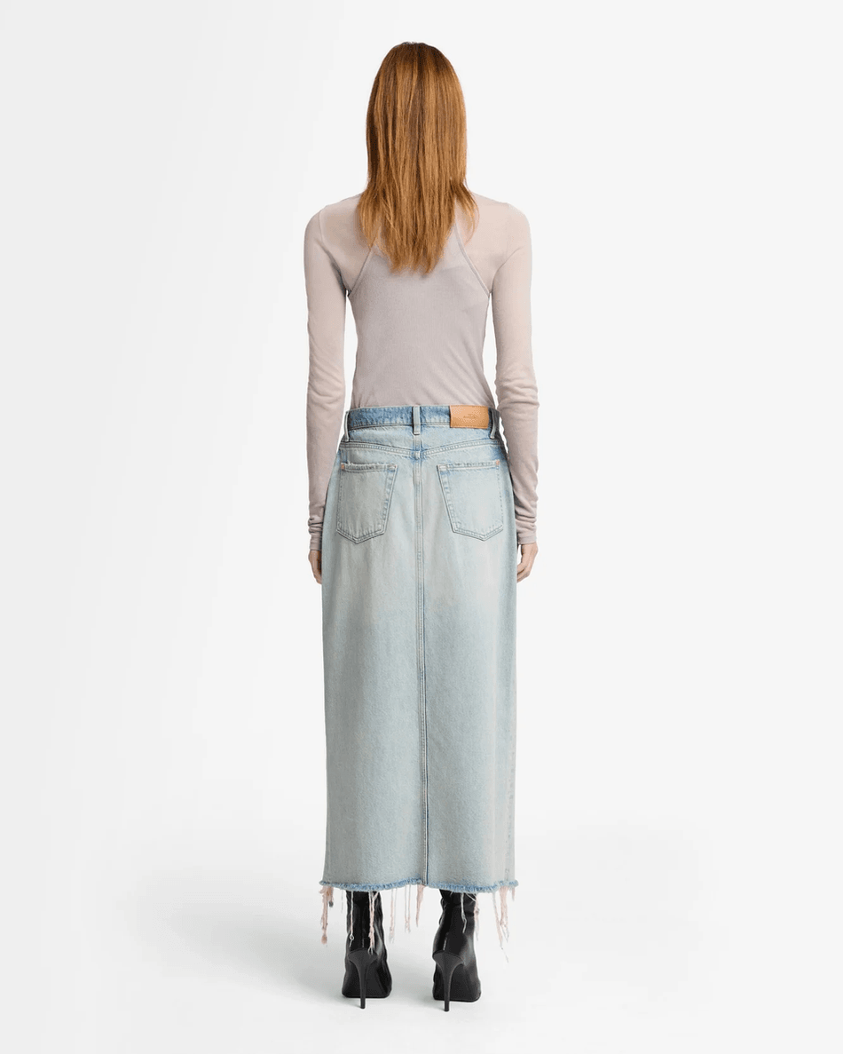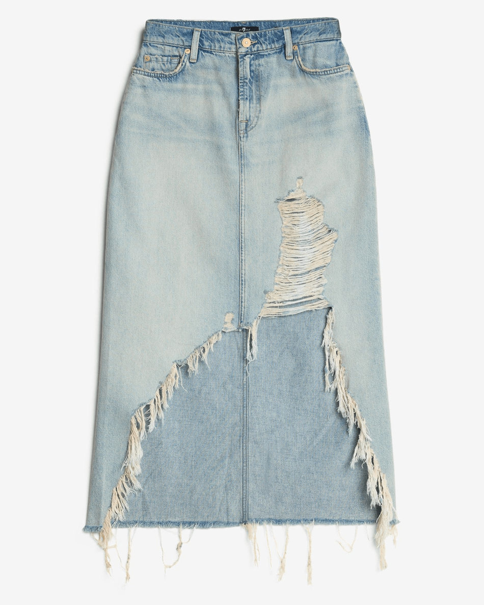 Don't miss out on this essential addition to your wardrobe! Shop the 7 For All Mankind MANKIND Denim Midi Skirt in Peaches Peaches today and experience the perfect blend of style and comfort.