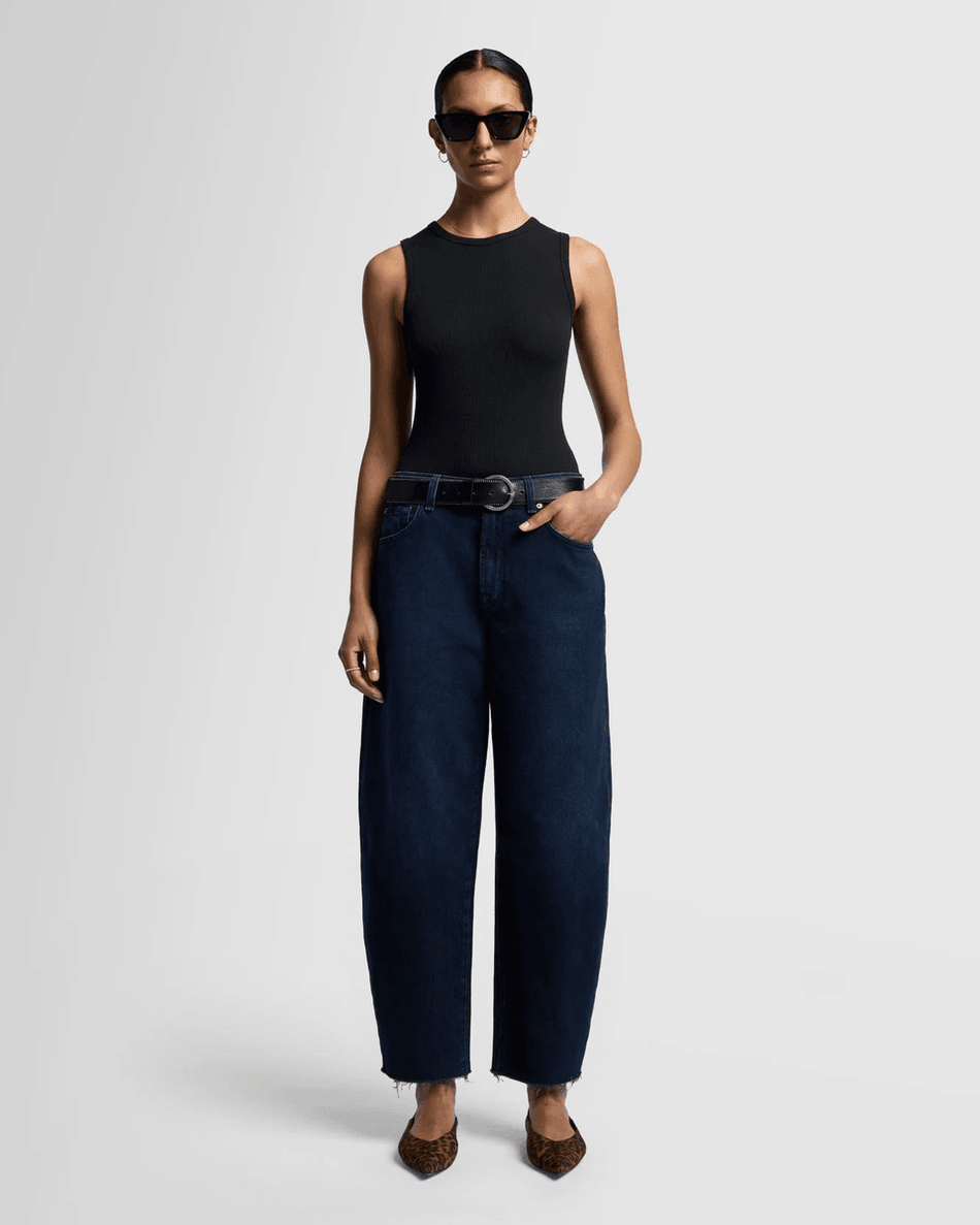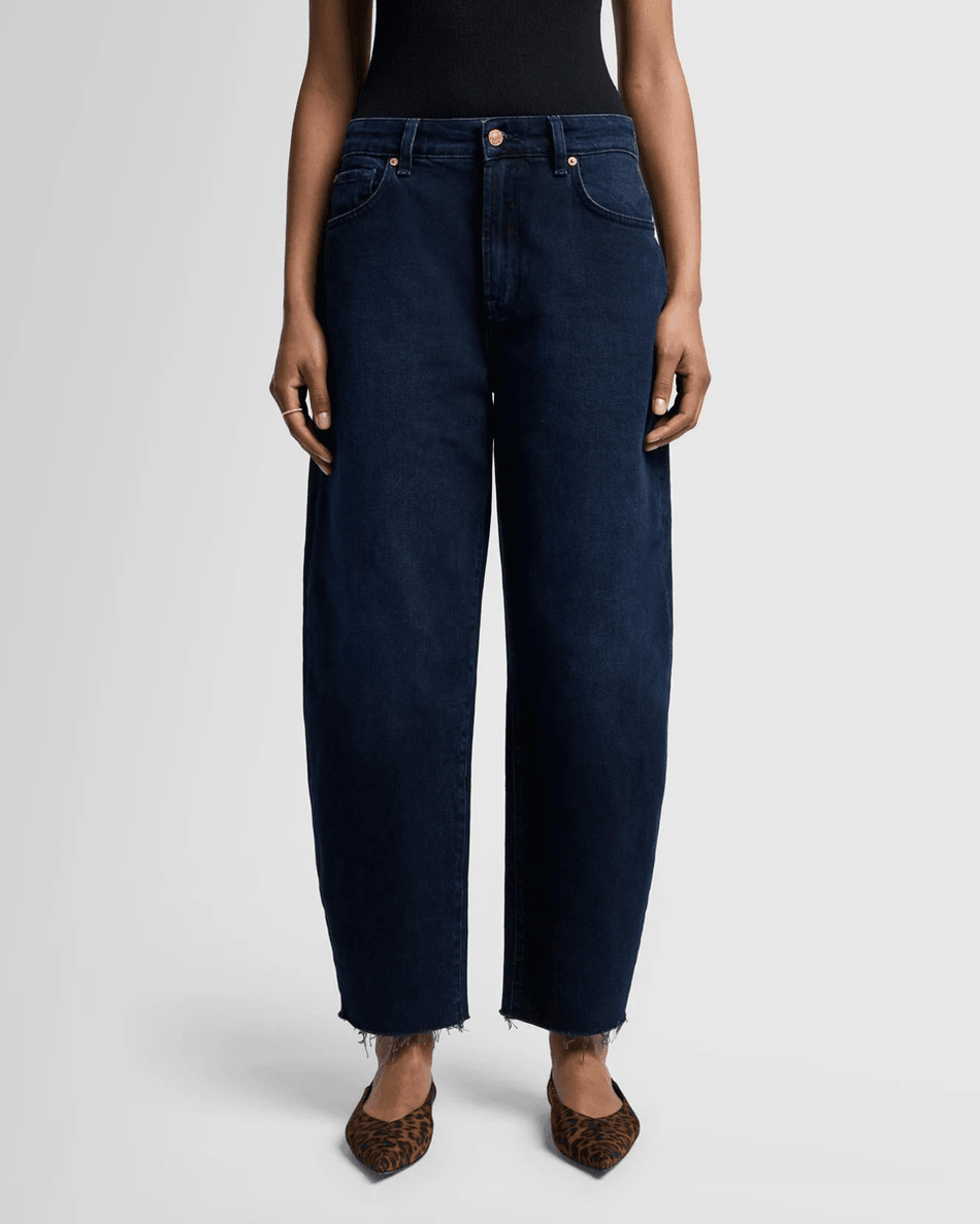 Elevate your denim collection with the 7 For All Mankind MANKIND Jayne in Blue Monday. This mid-rise barrel-leg jean combines style and comfort, offering a relaxed silhouette that perfectly balances fashion and functionality.