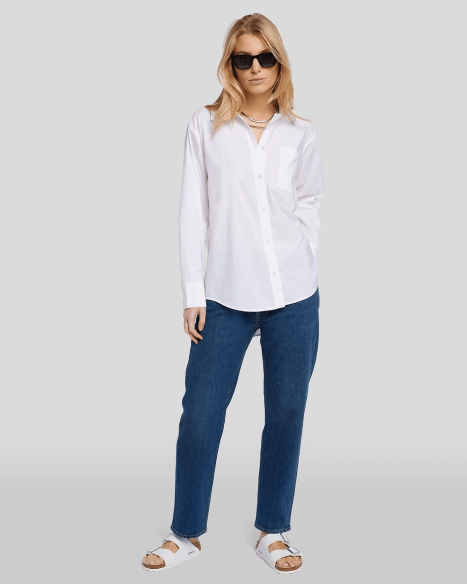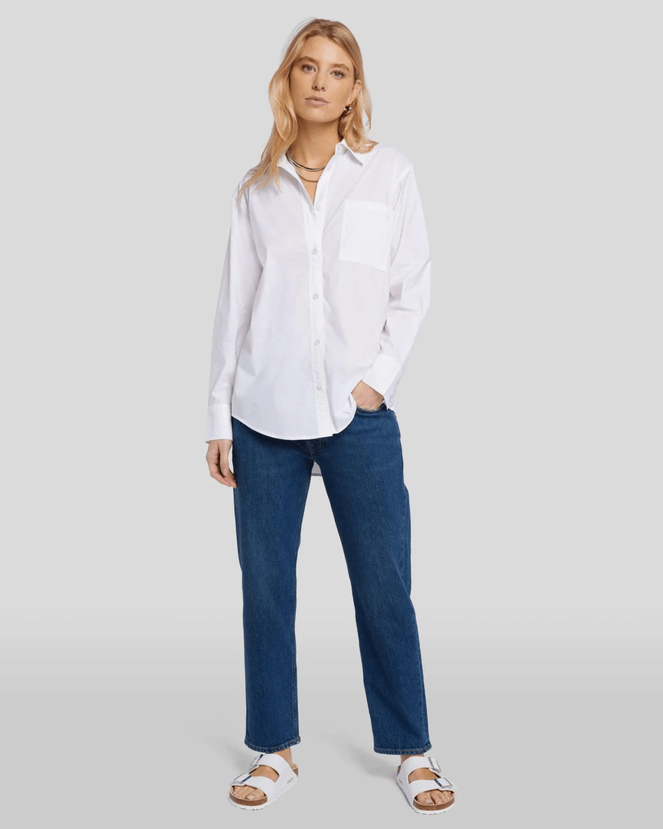 The 7 For All Mankind MANKIND Julia Boyfriend Jean in Bluebell is designed with a loose silhouette that pays homage to the iconic '90s style. Pair it effortlessly with an oversized blazer for a chic, laid-back vibe, or style it with a cropped tee for a fresh, trendy appearance. This jean is not just about looks; it's crafted from high-quality rigid denim, ensuring long-lasting wear.