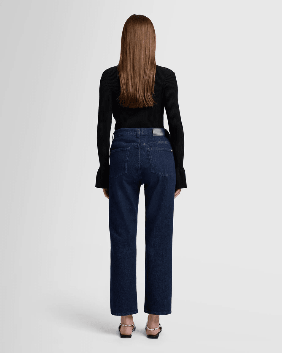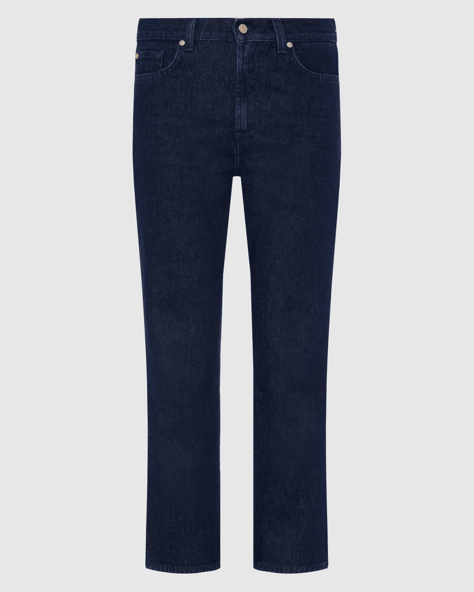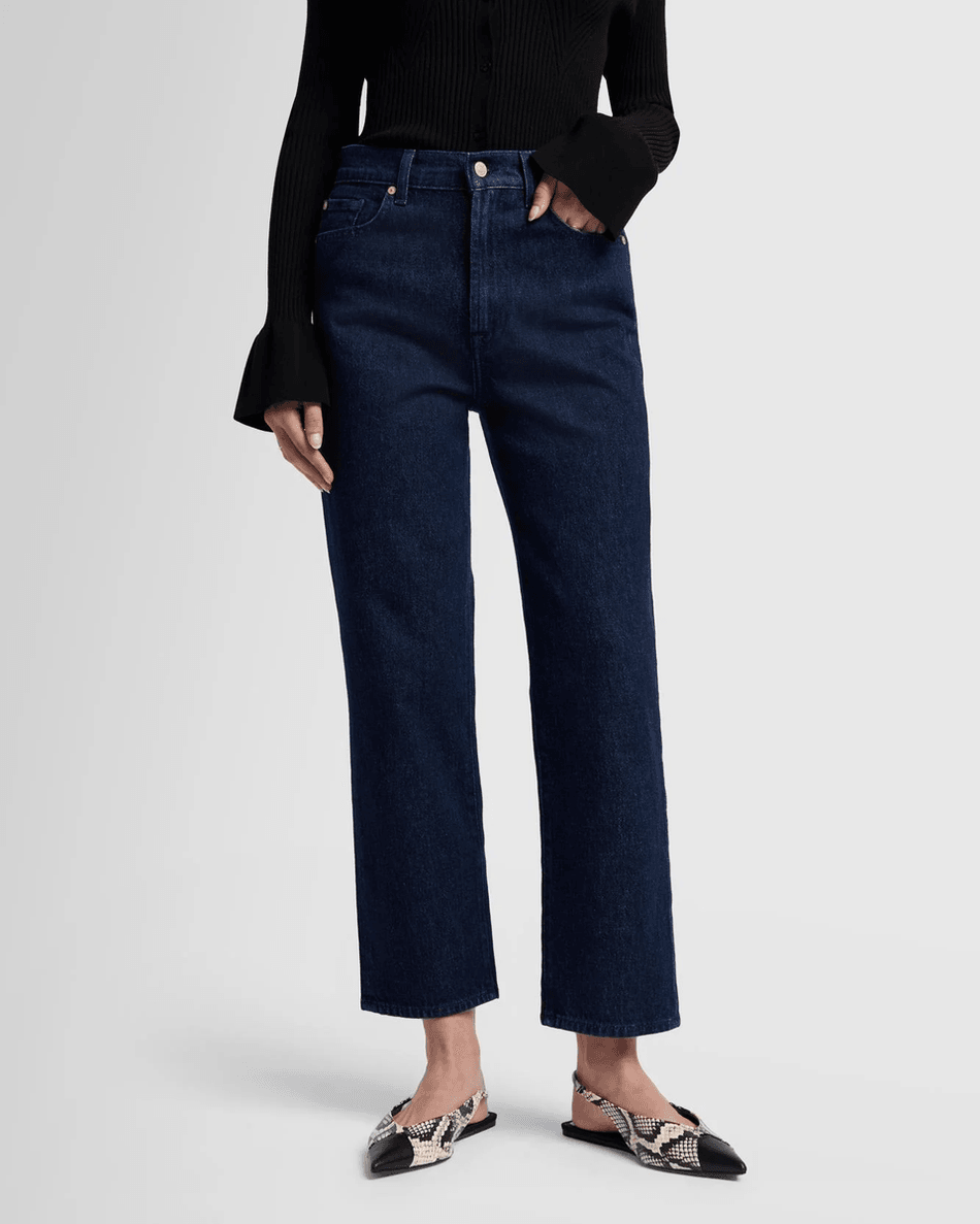 Introducing the 7 For All Mankind MANKIND Logan Stovepipe in Bella Bella, the perfect blend of contemporary style and timeless comfort. This high-rise cropped straight leg denim is designed to enhance your silhouette while providing an effortlessly chic look.