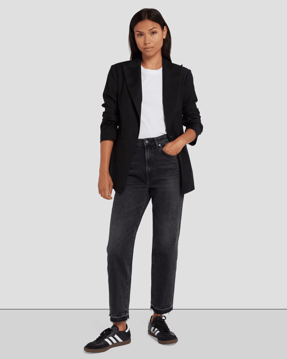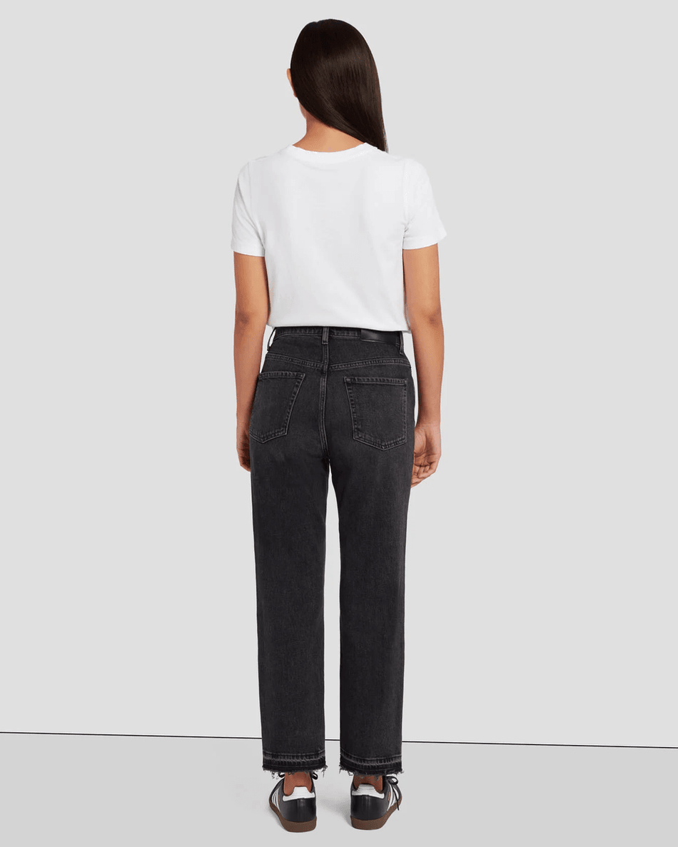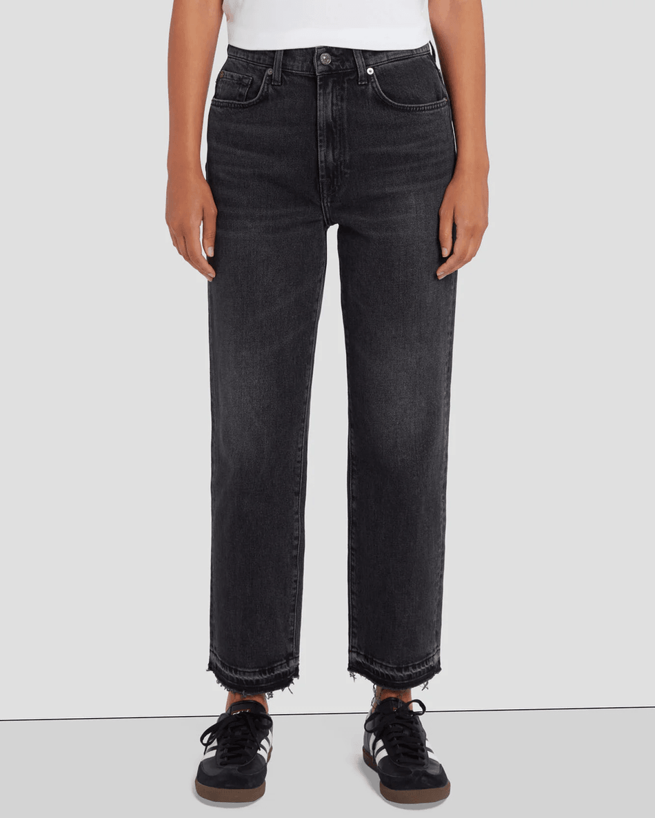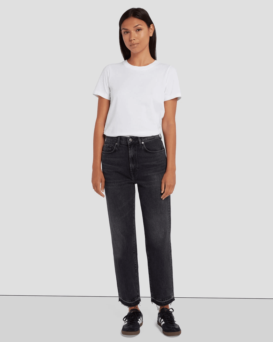 Introducing the 7 For All Mankind MANKIND Logan Stovepipe in Licorice—your new go-to choice for modern comfort and style. This innovative take on the classic straight leg jean offers a high waist and cropped hem, perfectly designed for that effortlessly cool look you desire.