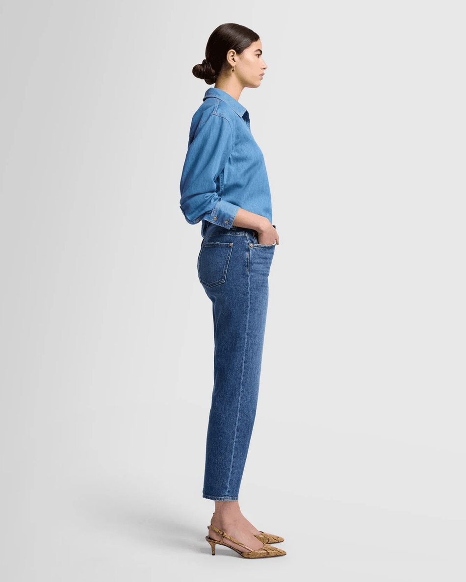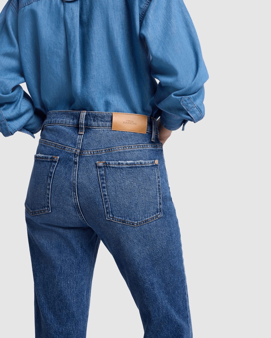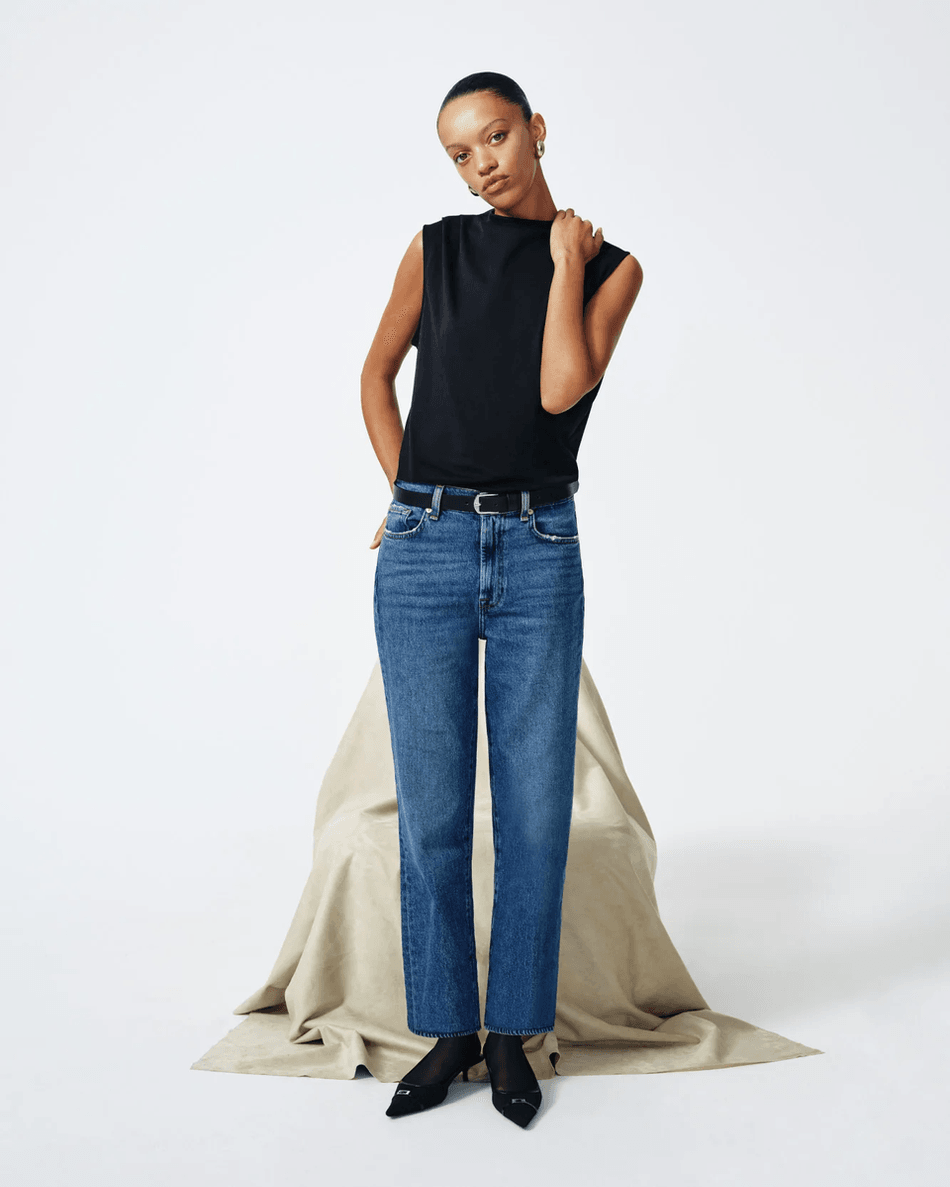 Elevate your denim game with the 7 For All Mankind MANKIND Logan Stovepipe in Santa Cruz. Designed for those who appreciate classic style, this high-rise cropped straight leg jean combines timeless fashion with modern comfort. Experience the essence of quality denim that improves with every wear.