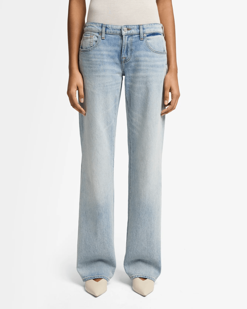 The 7 For All Mankind MANKIND Low Straight in Tokyo Tokyo is crafted from durable rigid denim, designed to maintain its shape while developing that vintage, lived-in feel over time. The light wash features a zip fly with button closure, making it not just stylish but also practical. Subtle fading and whiskering enhance its character, giving you a pair of jeans that stand out.