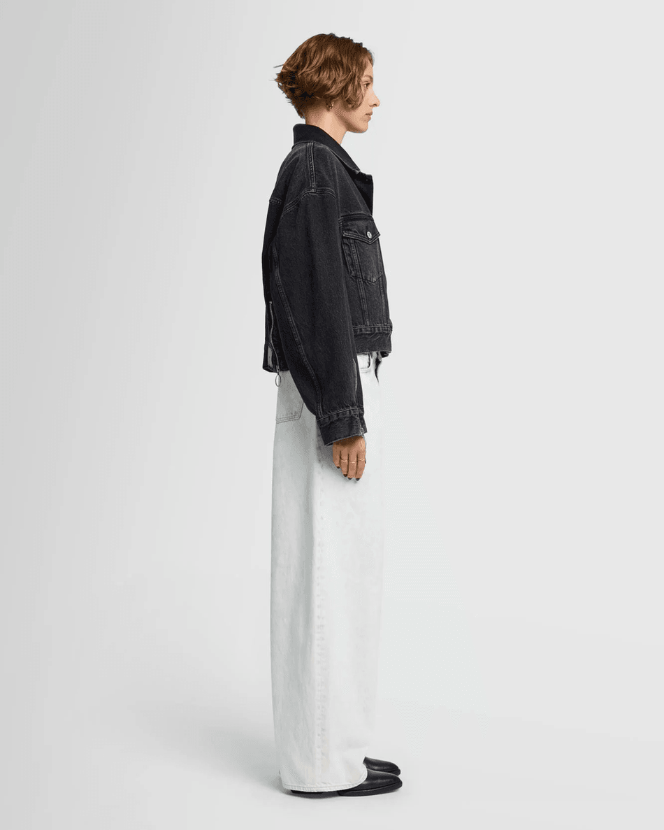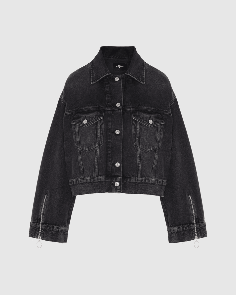 7 For All Mankind MANKIND Oli Cropped Trucker in Hustle Hustle