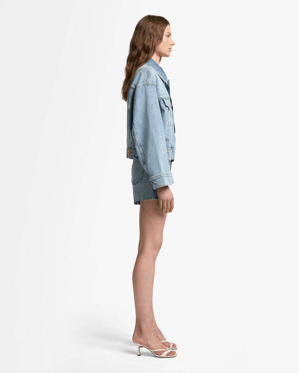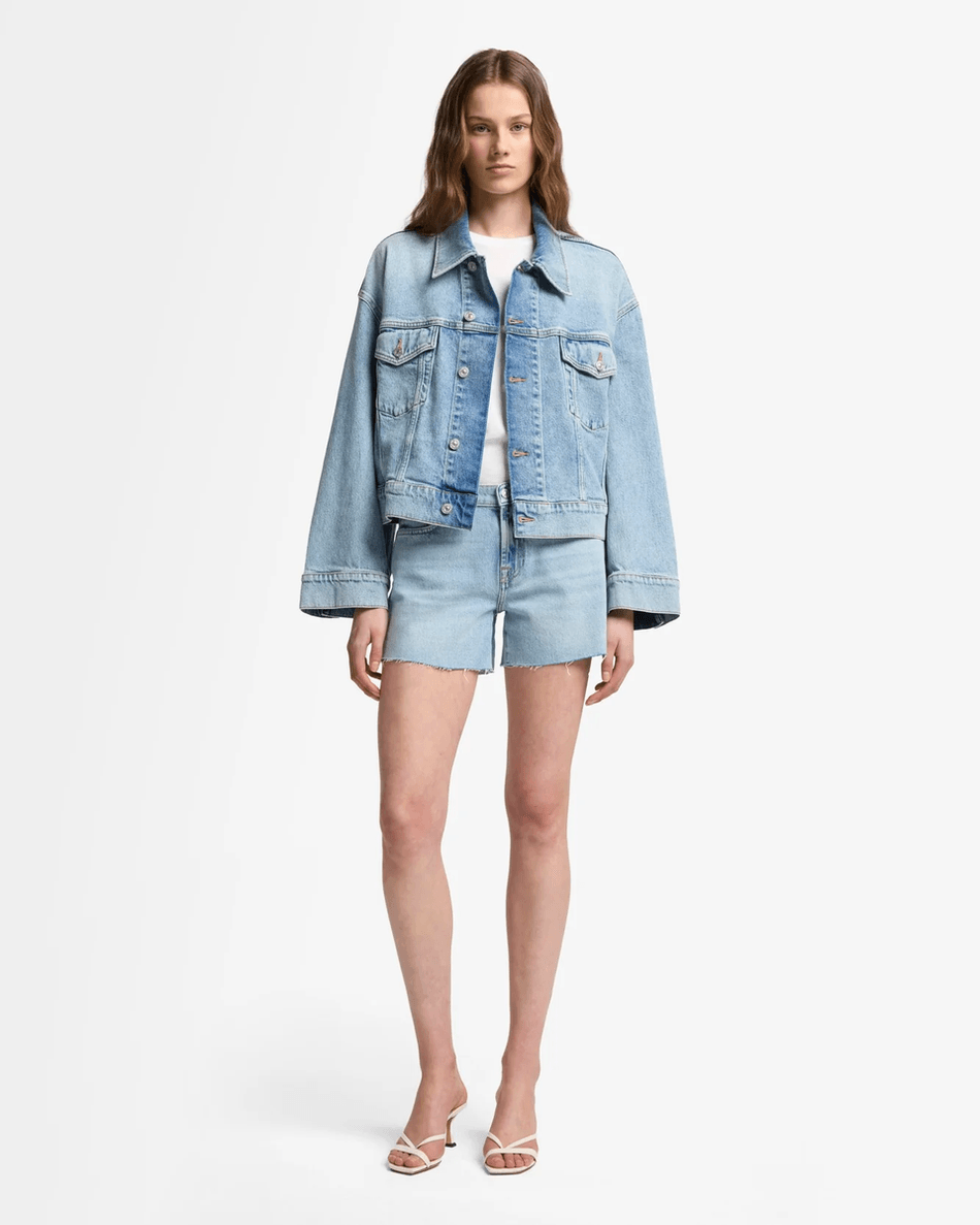 Discover the 7 For All Mankind MANKIND Oli Cropped Trucker Jacket in Ode To