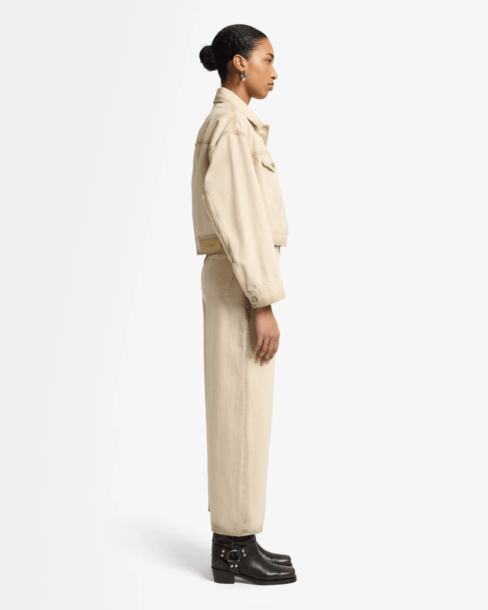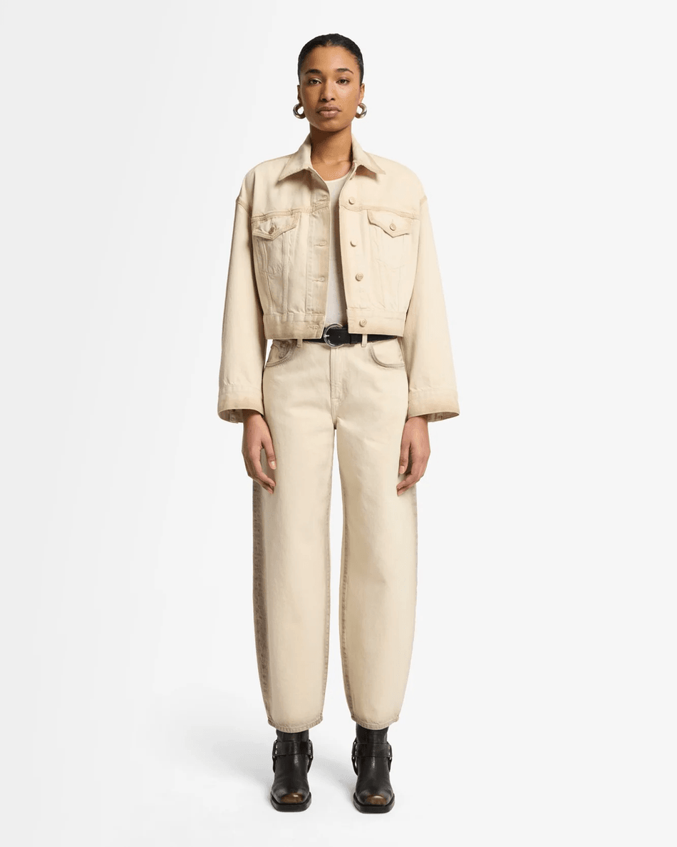 Discover the 7 For All Mankind MANKIND Oli Cropped Trucker Jacket in Sand Beach