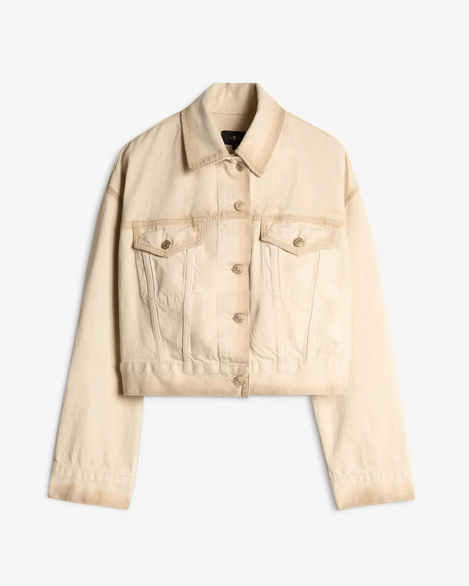 Don't miss out on the opportunity to own the 7 For All Mankind MANKIND Oli Cropped Trucker Jacket in Sand Beach. Shop now and transform your style with this must-have piece!