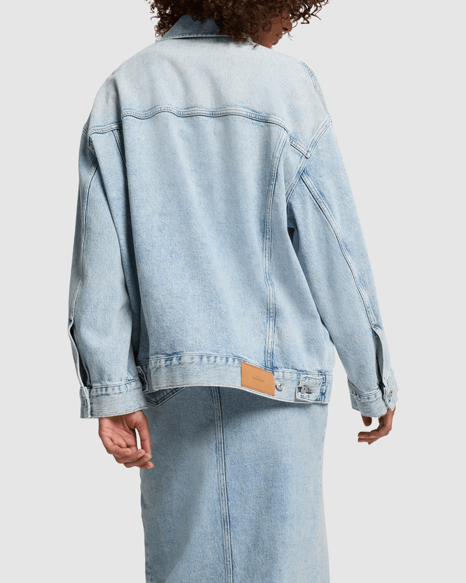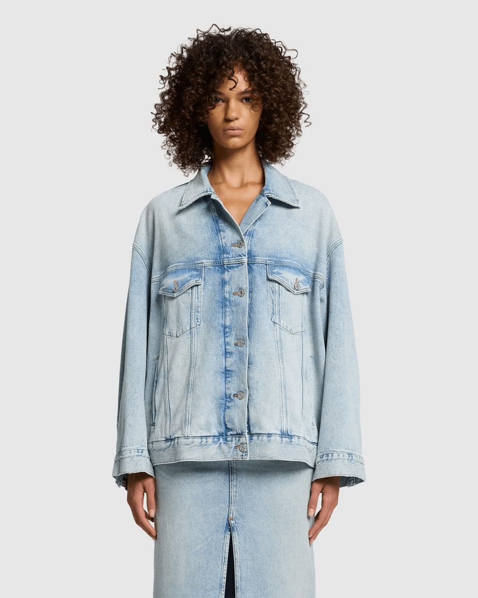 Discover the 7 For All Mankind MANKIND Oli Oversized Trucker in Sahara Sahara