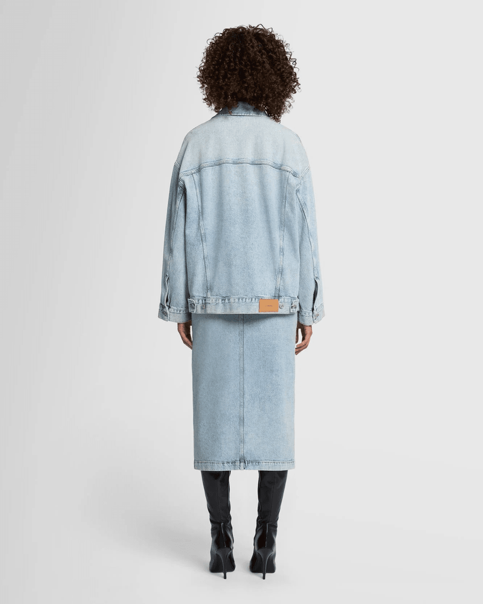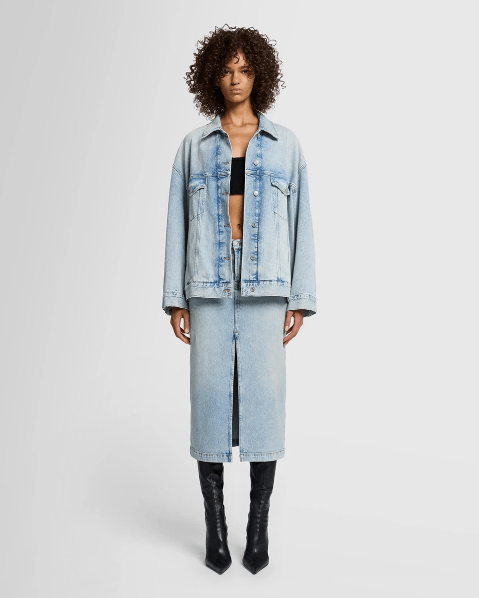 The 7 For All Mankind MANKIND Oli Oversized Trucker is not just a jacket; it’s a fashion statement. With its oversized silhouette, this trucker jacket is perfect for layering over tees or dresses, making it versatile for all seasons. The vintage blue wash adds a touch of nostalgia while the button closure and classic collar enhance its timeless appeal.