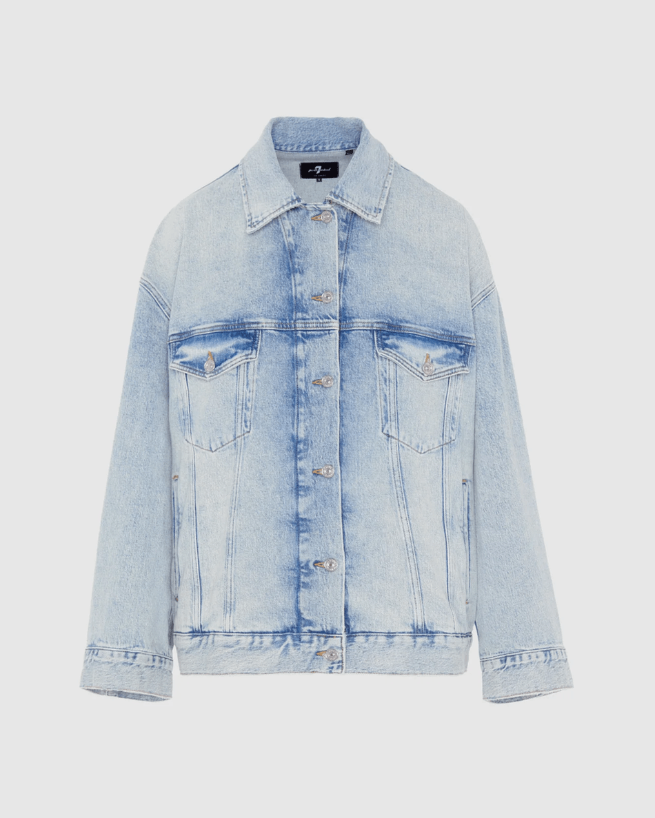 Elevate your style with the 7 For All Mankind MANKIND Oli Oversized Trucker in Sahara Sahara. This oversized trucker jacket combines a laid-back vibe with a classic denim feel, making it a must-have piece for your wardrobe.