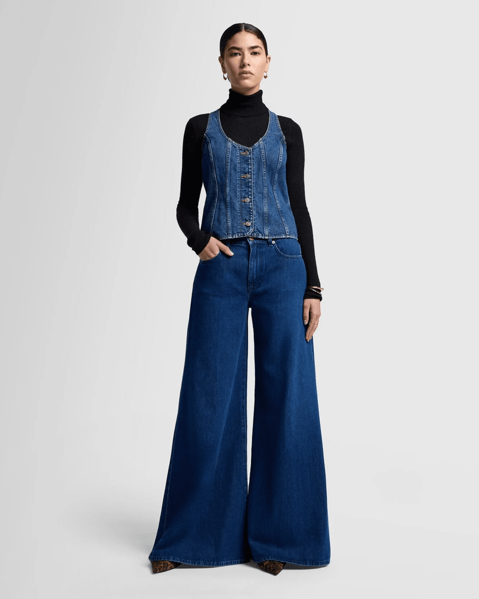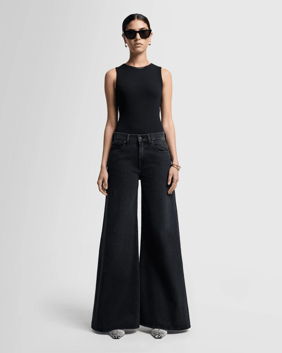 Elevate your style with the 7 For All Mankind MANKIND Willow in Crow Crow. This statement piece features an exaggerated palazzo silhouette that transforms any outfit, making it a must-have for fashion-forward individuals.