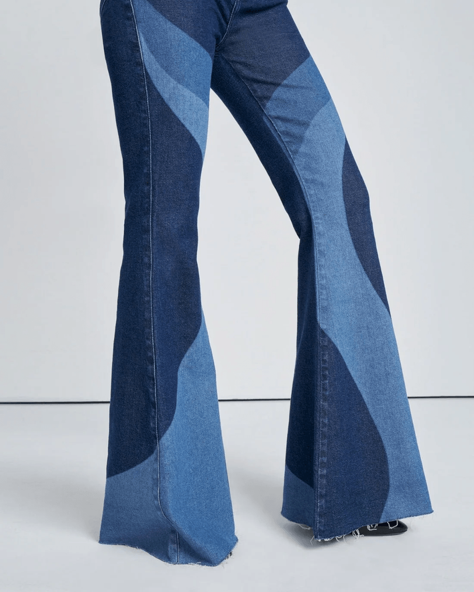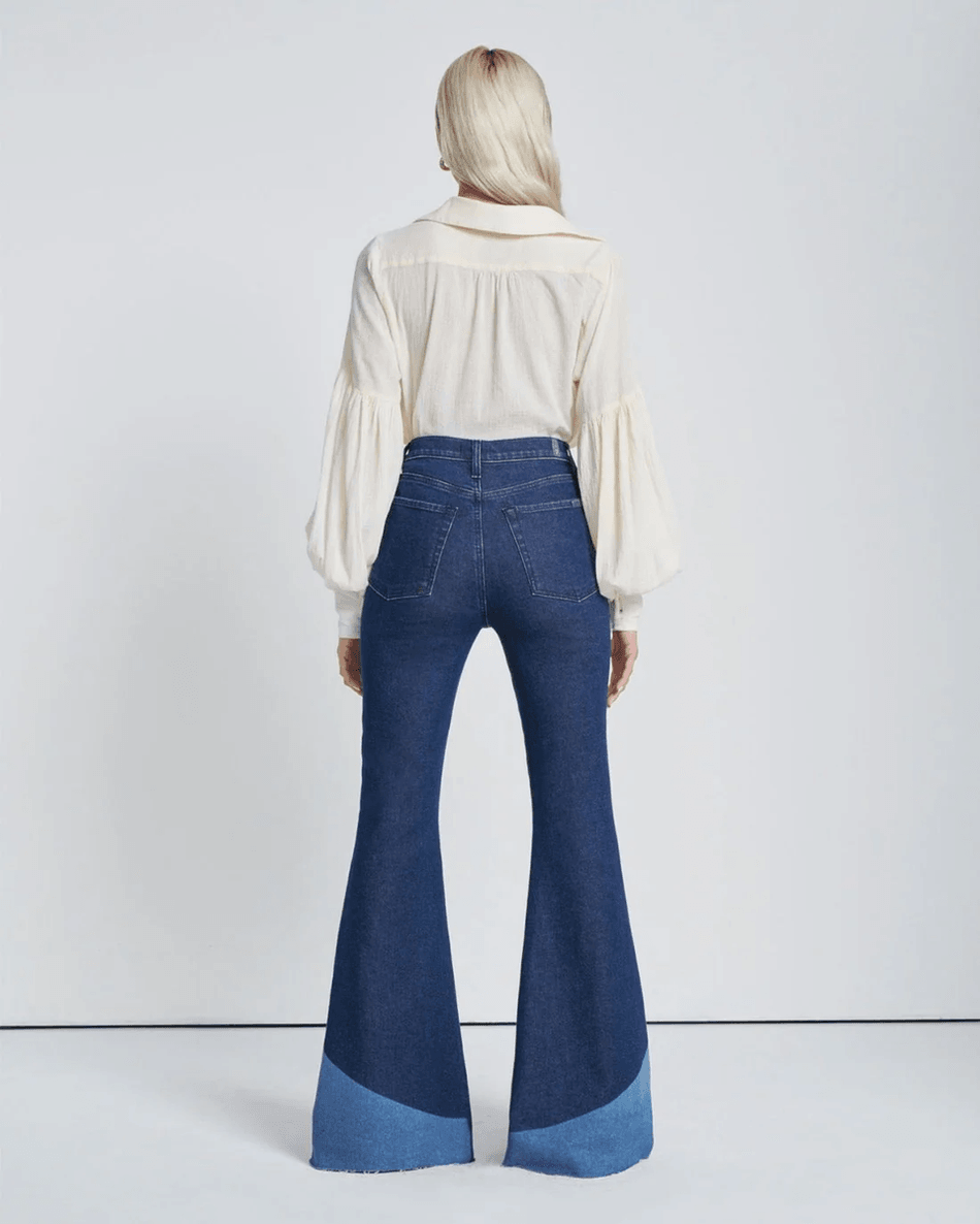 Discover the 7 For All Mankind Mega Flare Jean in Indigo Swirl Delight