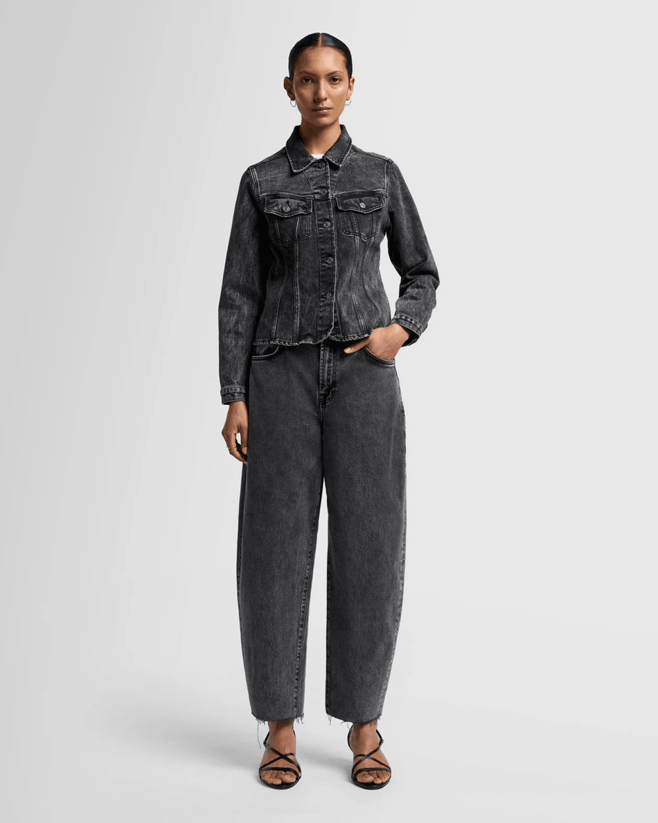 The 7 For All Mankind Mila Jacket in Ballad Ballad is more than just a jacket; it’s a versatile piece that can be styled in countless ways. Pair it with your favorite jeans for a casual look, or throw it over a dress to add an edge to your outfit. The faded black wash gives it a chic, worn-in vibe, making it perfect for day-to-night transitions.