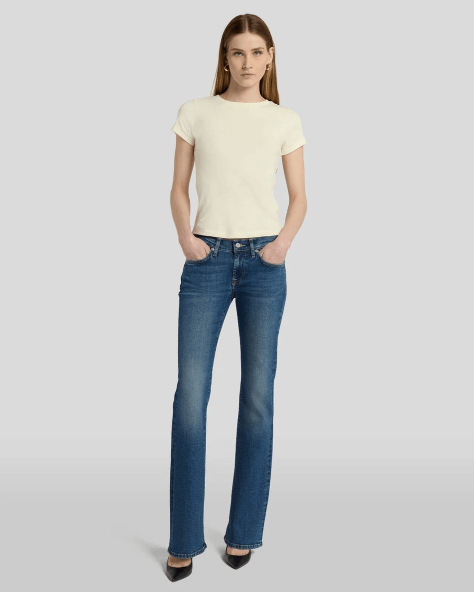 Step up your style with the 7 For All Mankind Original Bootcut in New York Dark. This iconic low-rise jean is a timeless favorite, designed to elevate your wardrobe with its perfect blend of comfort and sophistication.