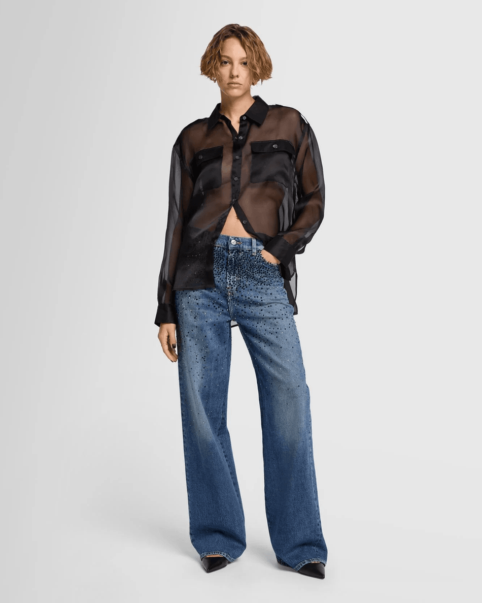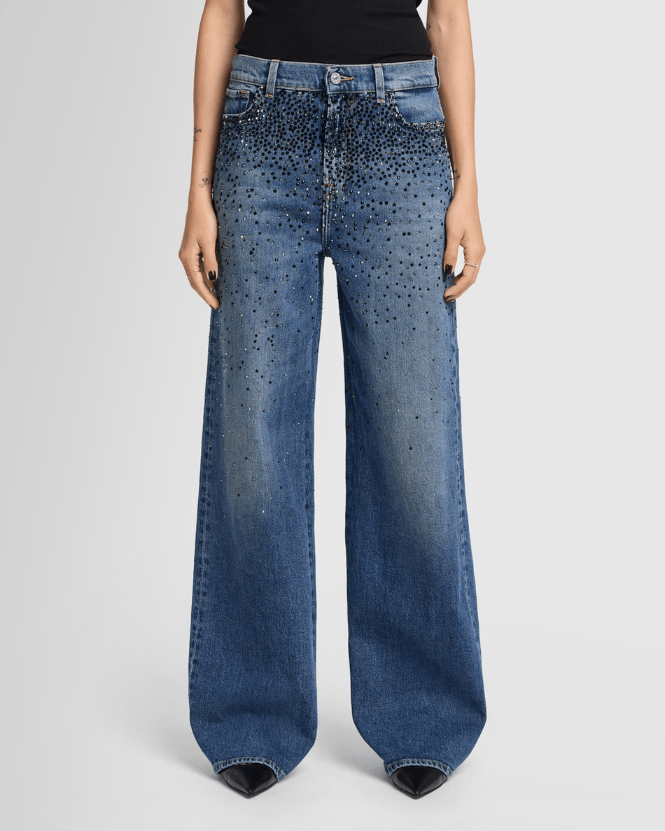 Elevate your denim collection with the 7 For All Mankind Scout Embellished Oversized Straight jeans in vibrant Candy Candy. These jeans combine a trendy oversized silhouette with eye-catching embellishments, making them a must-have for fashion lovers.